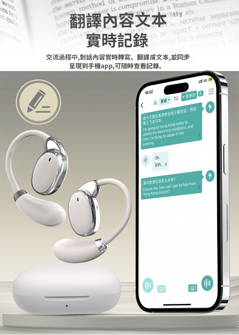 新款V18翻譯耳機5.4藍牙翻譯機掛耳式無線藍牙耳機多國語言