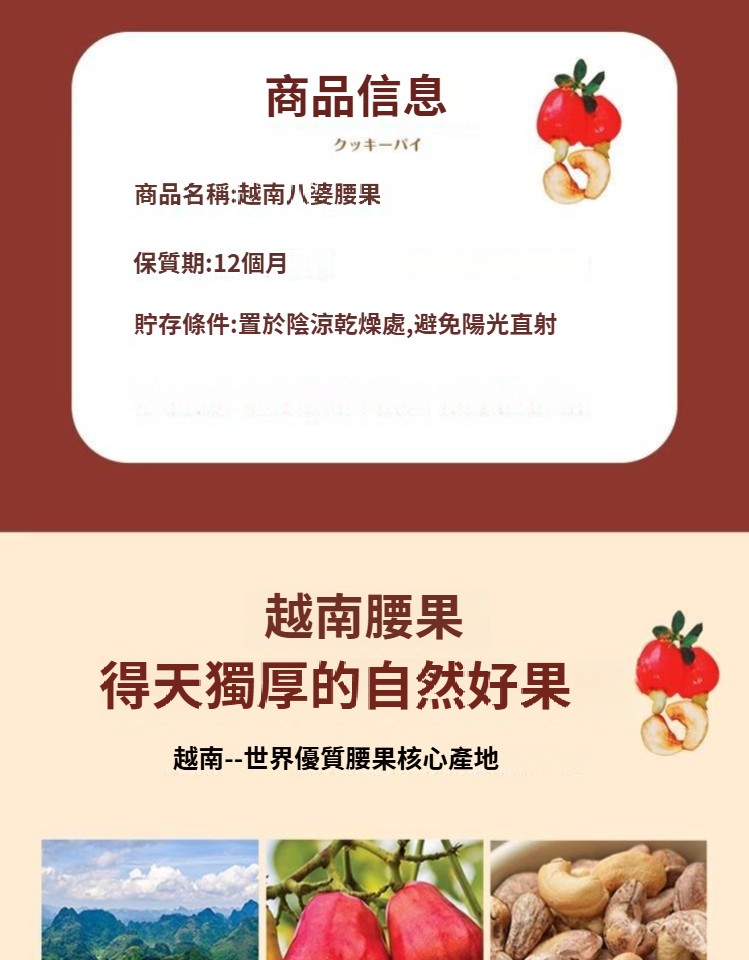 越南八婆進口炭燒鹽焗口味帶皮大腰果網紅零食堅果原味 NT$ 999
