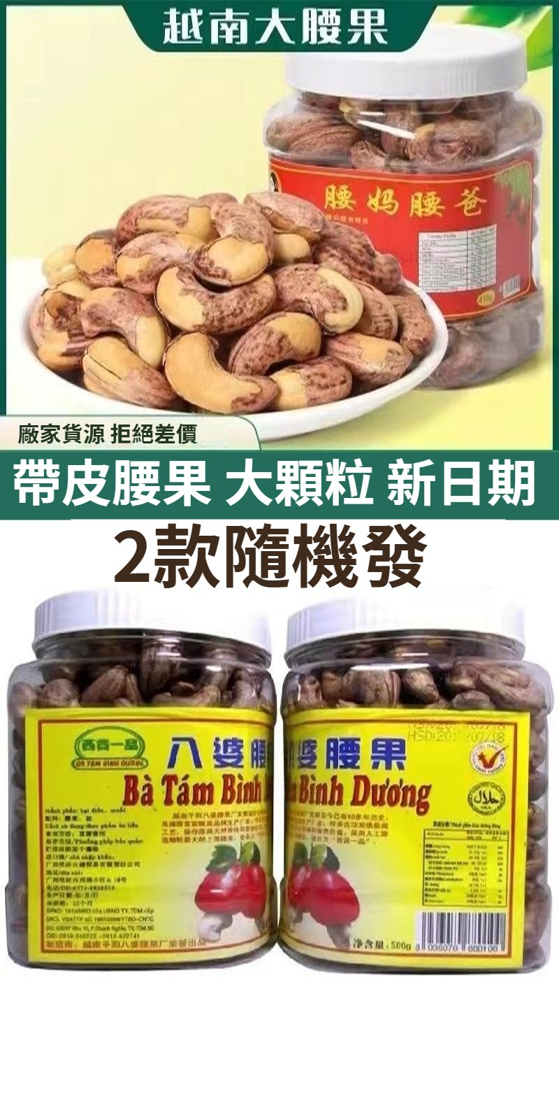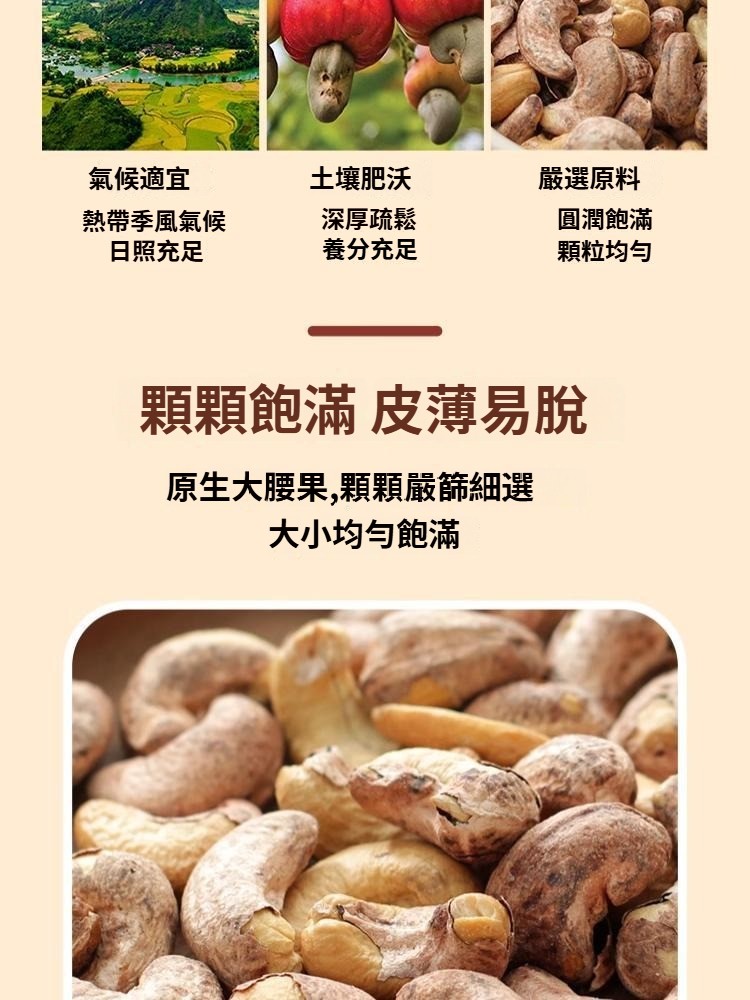 越南八婆進口炭燒鹽焗口味帶皮大腰果網紅零食堅果原味