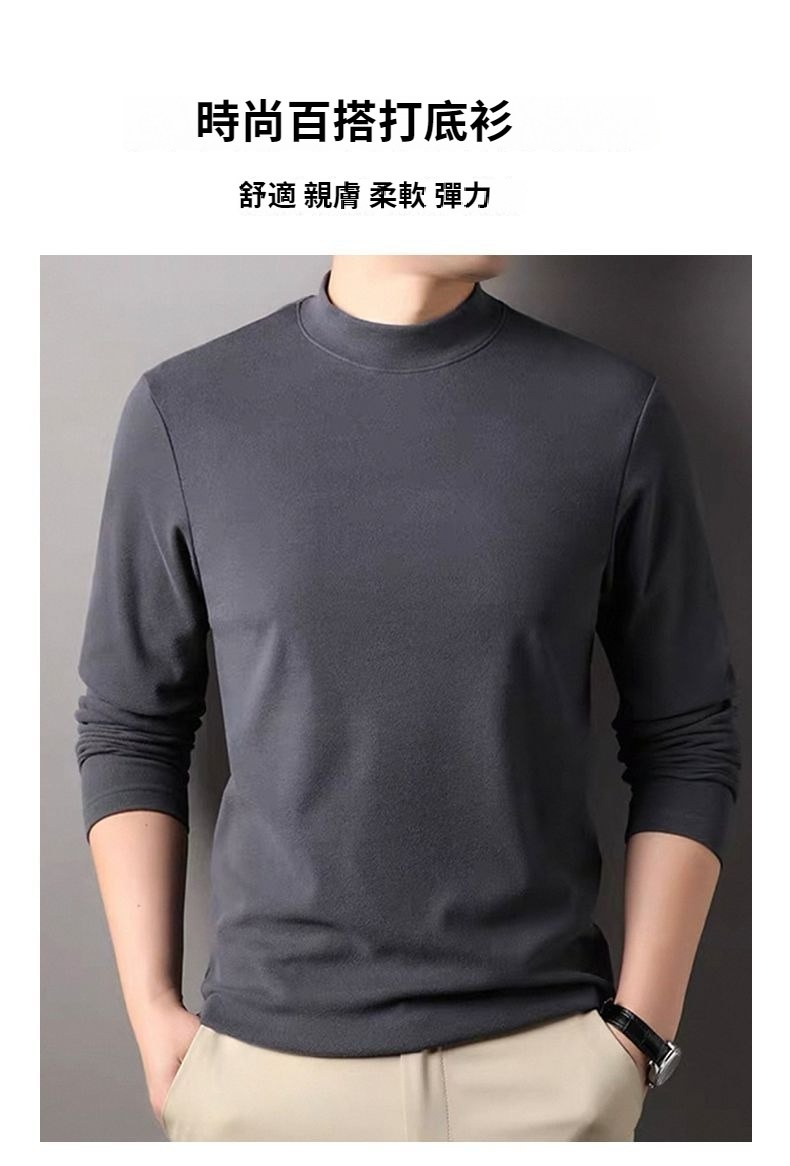 第 4 件 : 德絨半高領打底衫男秋冬季潮流彈性保暖上衣新款長袖T卹