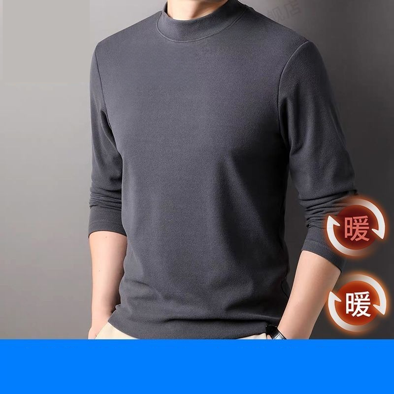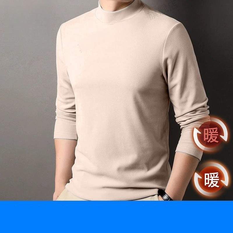 第 1 件 : 德絨半高領打底衫男秋冬季潮流彈性保暖上衣新款長袖T卹
