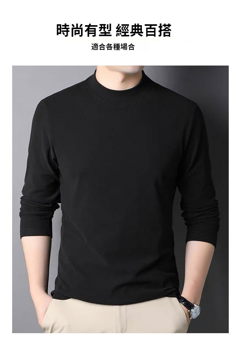 第 3 件 : 德絨半高領打底衫男秋冬季潮流彈性保暖上衣新款長袖T卹