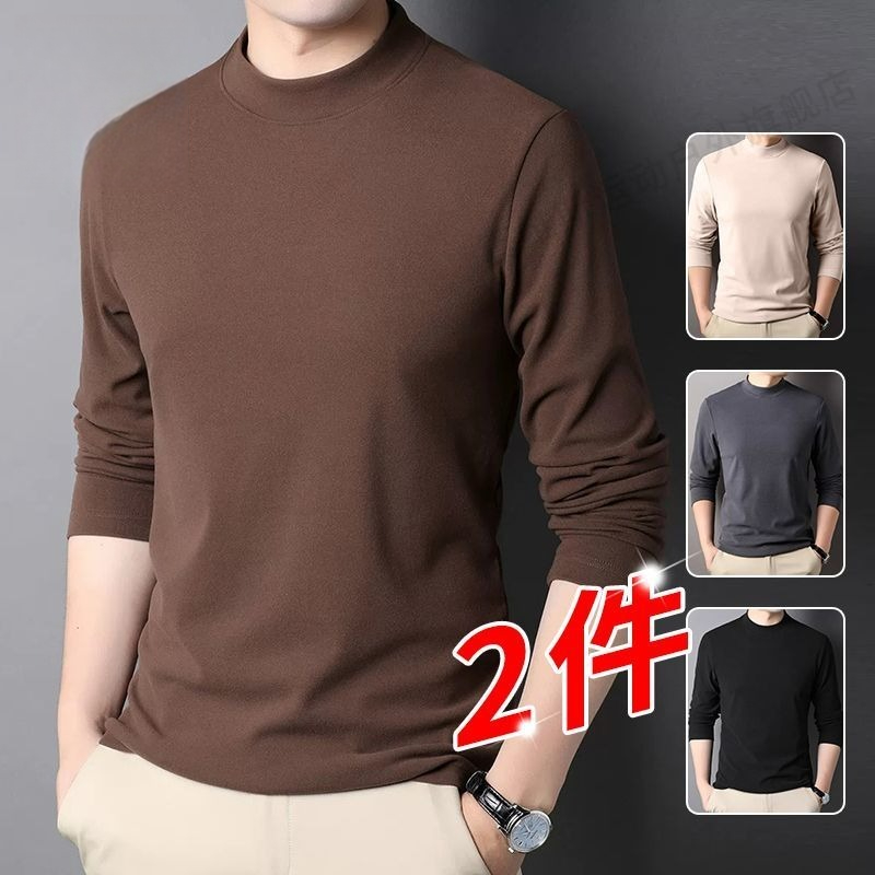 第 2 件 : 德絨半高領打底衫男秋冬季潮流彈性保暖上衣新款長袖T卹