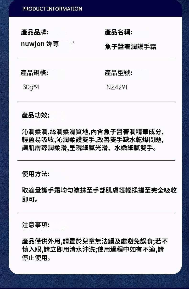 魚子醬奢潤護手霜 細膩柔潤絲滑清新淡雅芳香水嫩秋冬護手霜