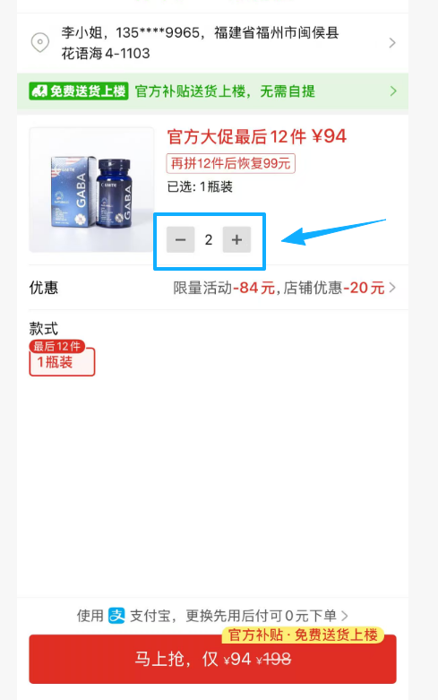 GABA睡眠軟糖 2瓶 (94元,如果漲價了和我說下,我重新找鏈接)https://mobile.yangkeduo.com/goods2.html?ps=0vyA5ILo8s