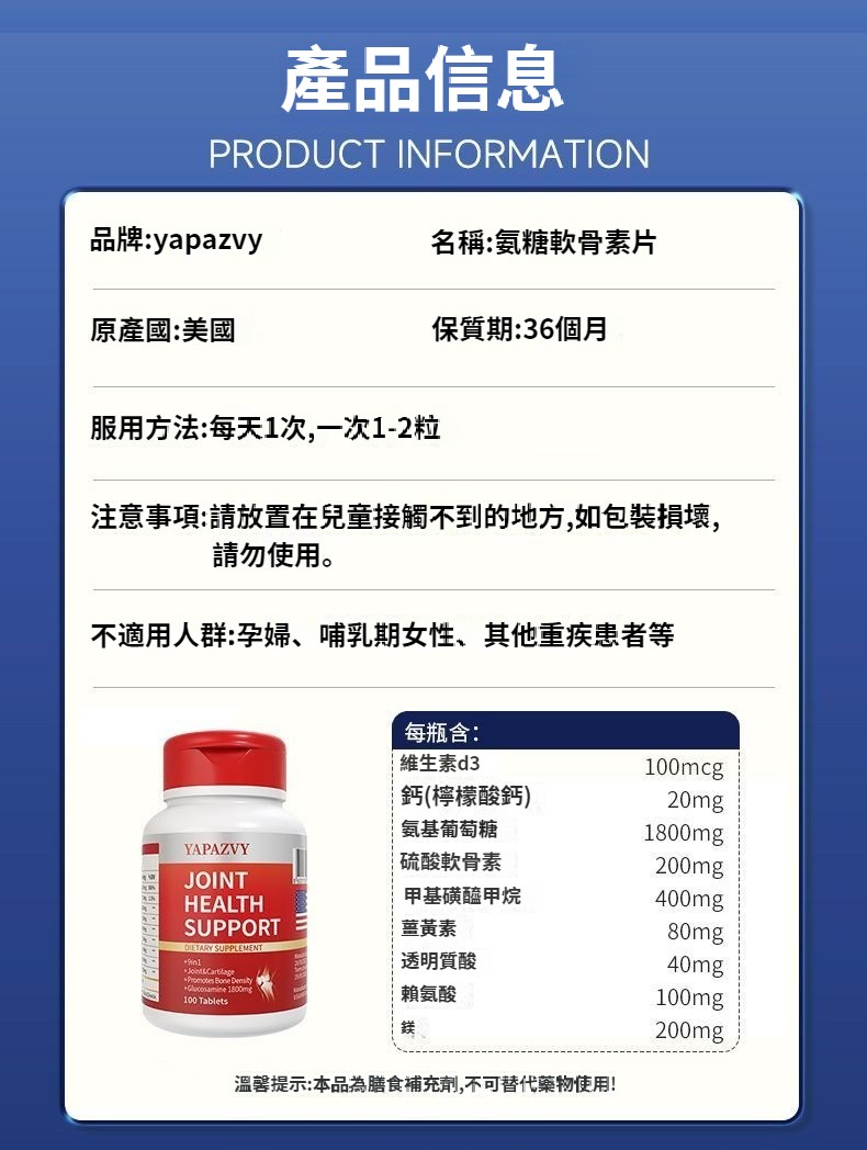 美國原裝進口醫用級氨糖軟骨素維骨力鈣片中老年膝蓋關節疼痛專用