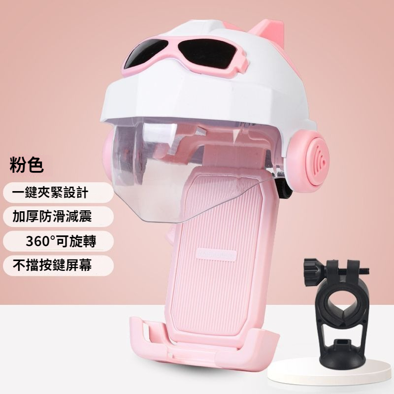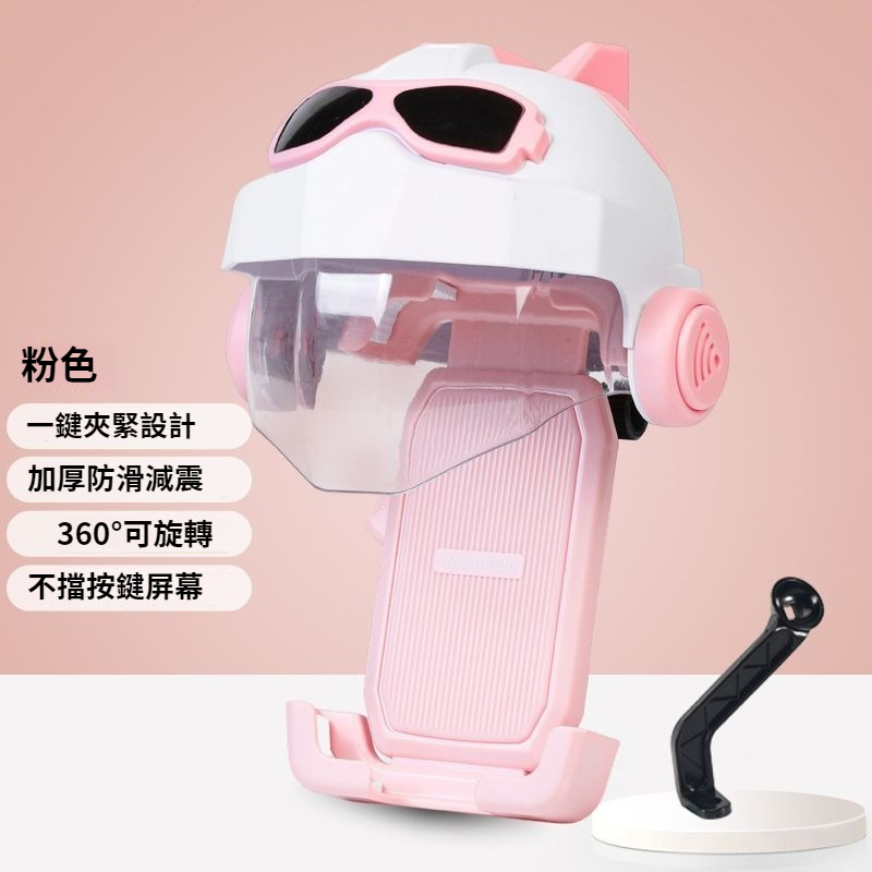 粉色頭盔【鏡面可翻】+HW-151車把款