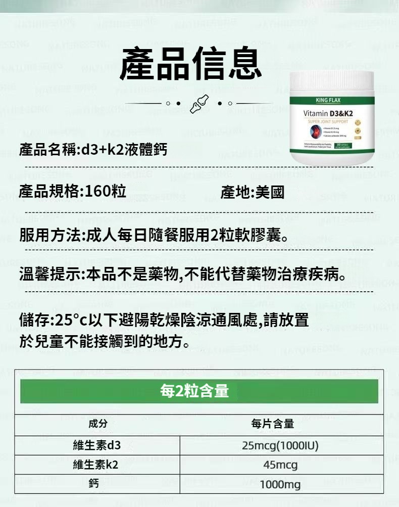 Vitamin D3&K2美國原裝進口液體鈣高含量1000mg補鈣入骨納米級吸收