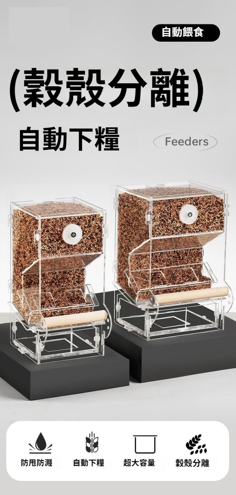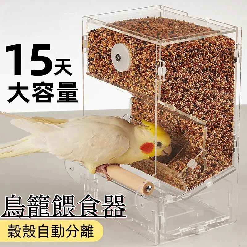 第 1 件 : 虎皮玄鳳牡丹鸚鵡自動餵食器 喂鳥防撒防濺 谷殼自動分離鳥食盒