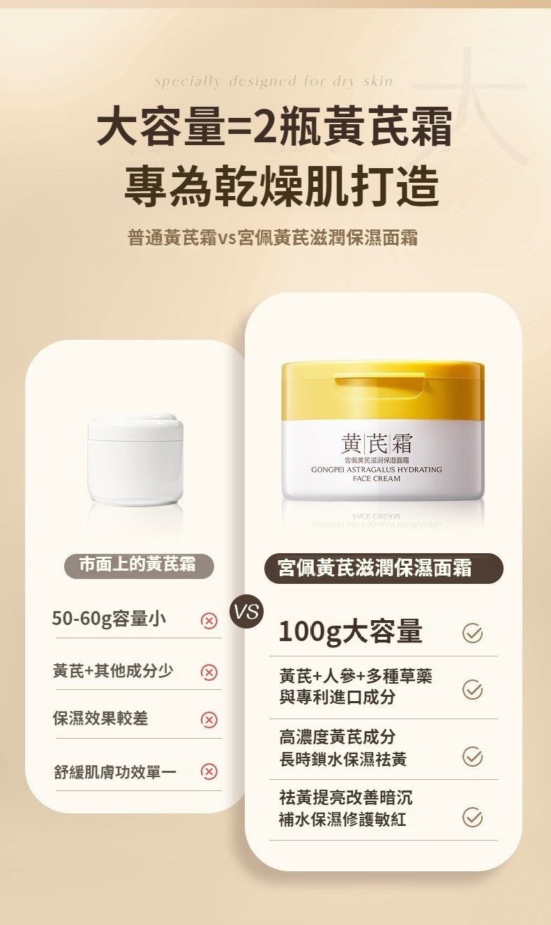 【老牌經典國貨】黃耆霜提亮嫩白超補水保濕改善肌膚滋潤控油面霜 NT$ 950