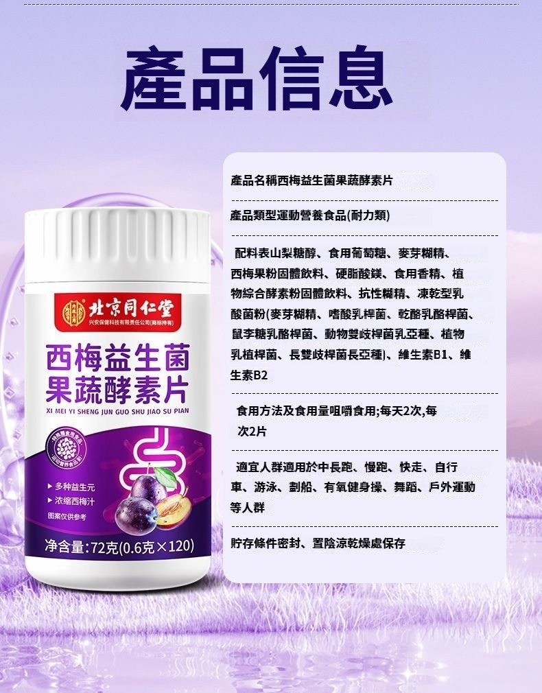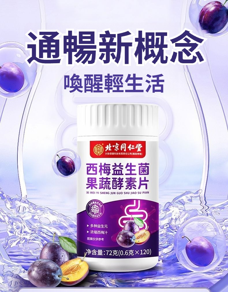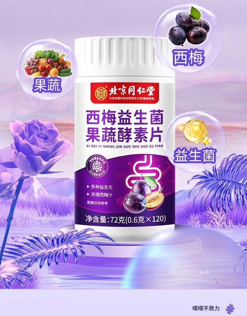 北京同仁堂西梅片益生菌蔬果酵素片潤腸通便酵素男女通用正品