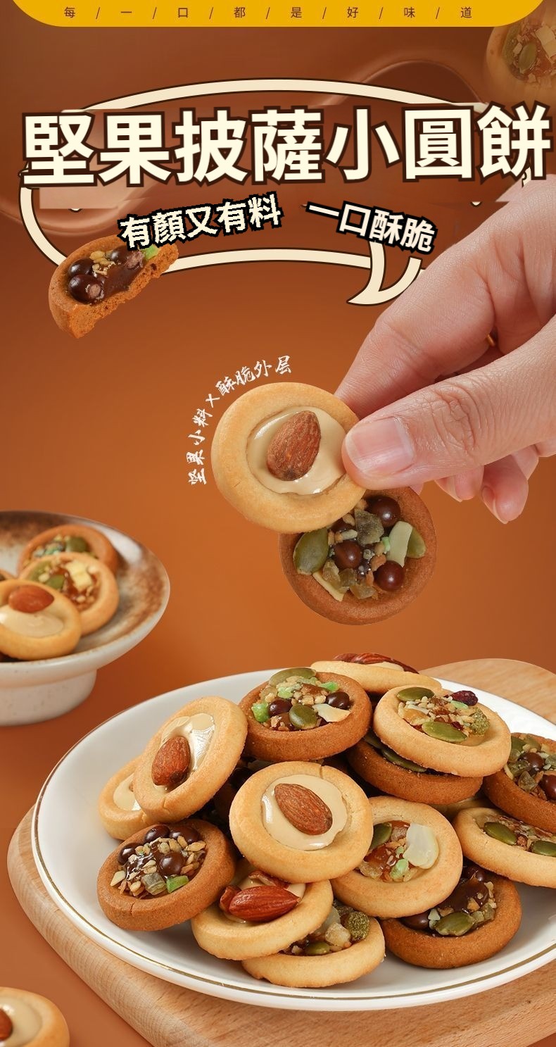 堅果披薩小餅鹹蛋黃巧克力巴旦木混合口味夾注心餅乾
