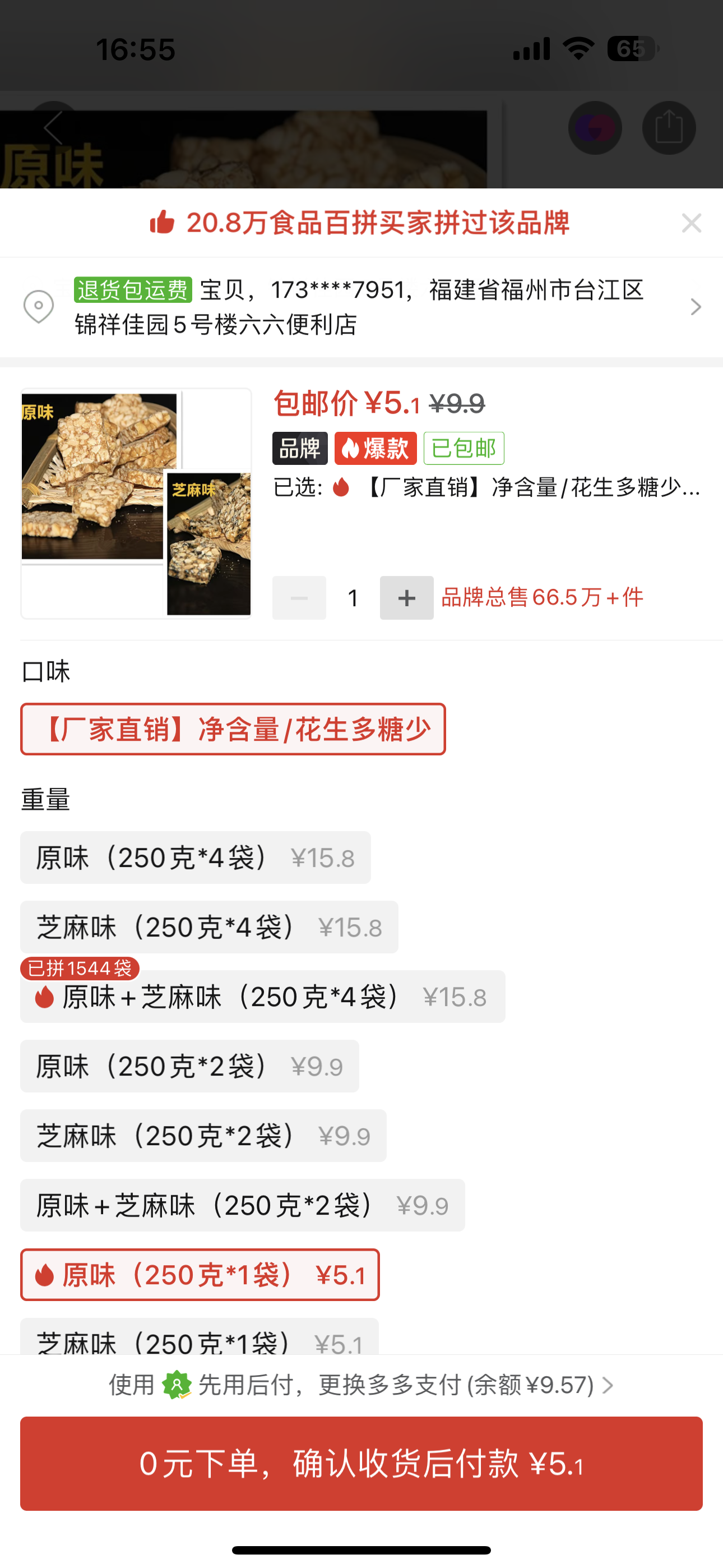 ②花生糖250G1袋原味 5.1元