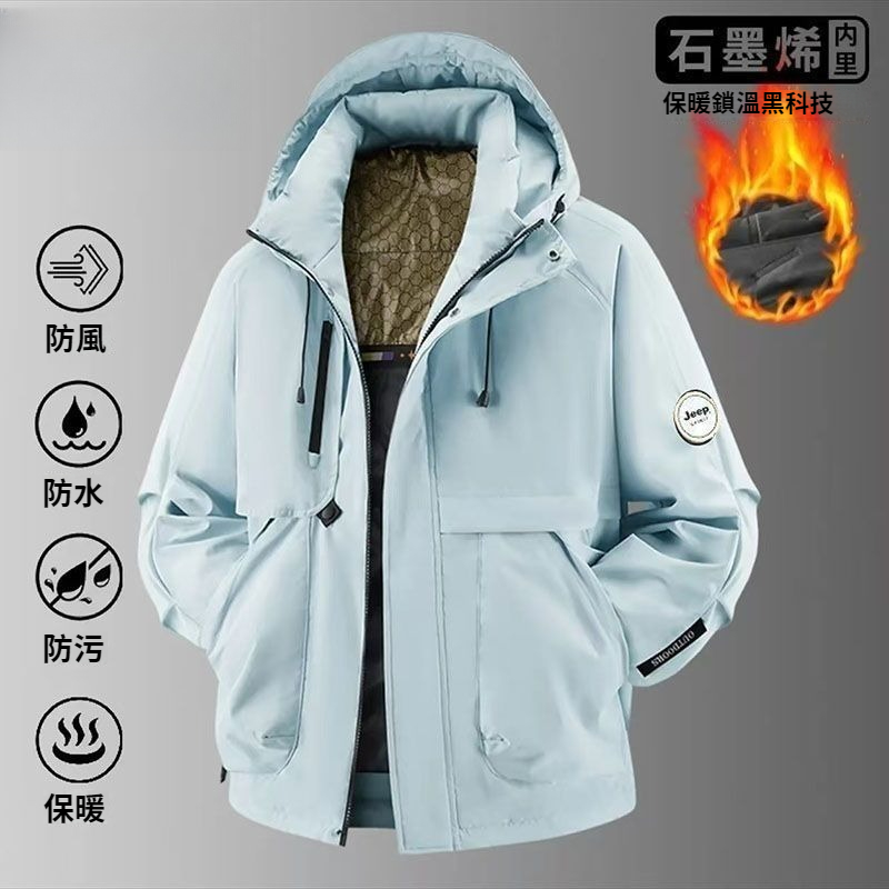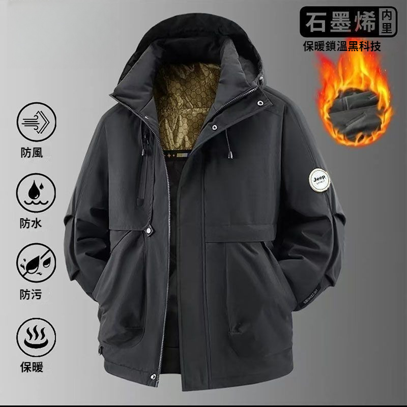 第 1 件 : 新品沖鋒衣棉衣男女款連帽加厚防風防水石墨稀羽絨棉服
