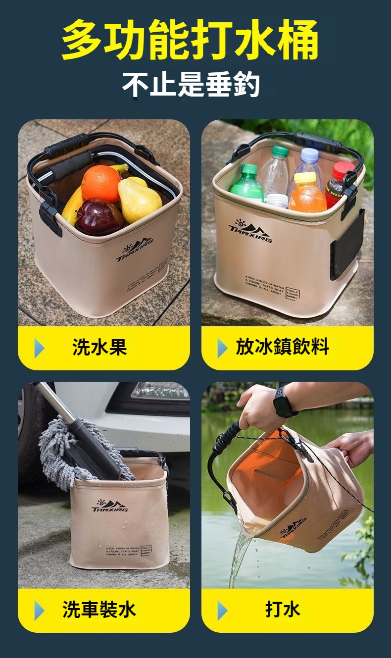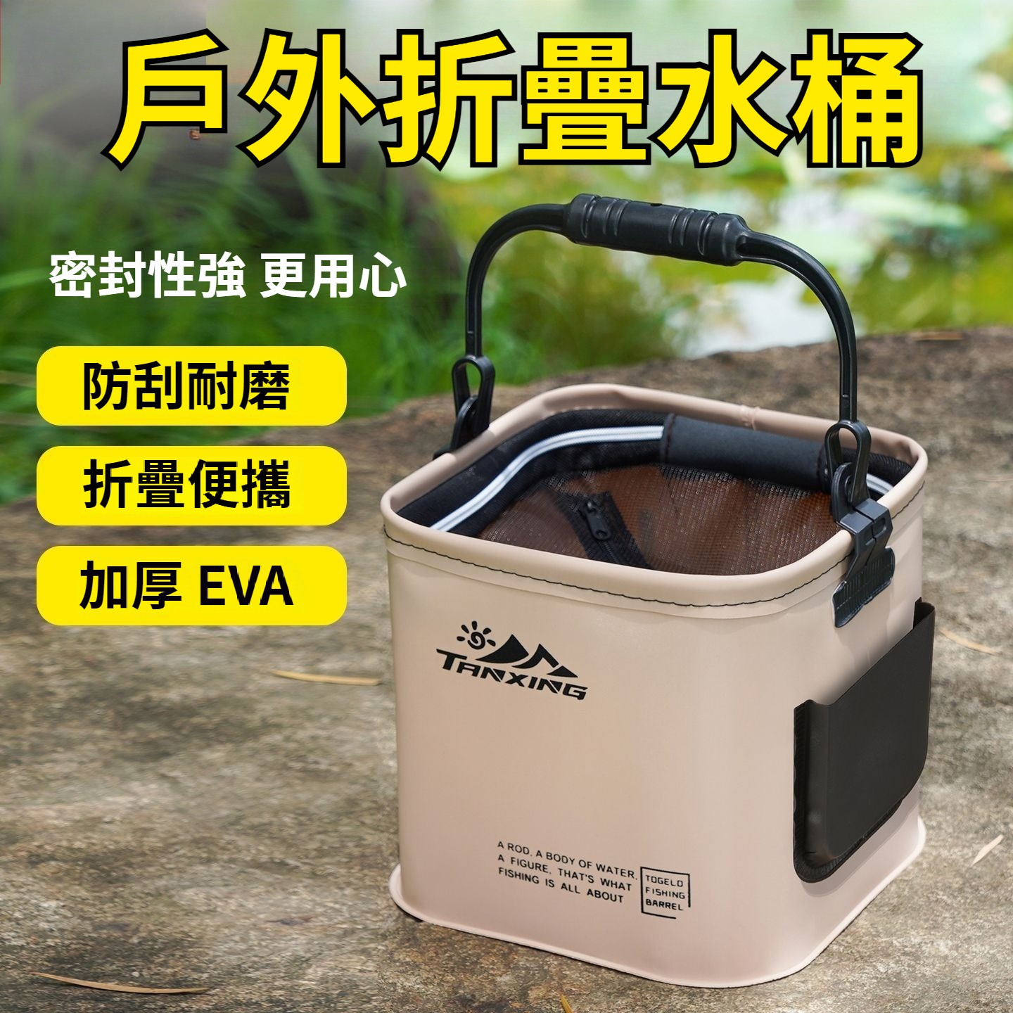 戶外野釣便攜式雙層加厚折疊水桶小物釣魚桶可折疊多功能提桶