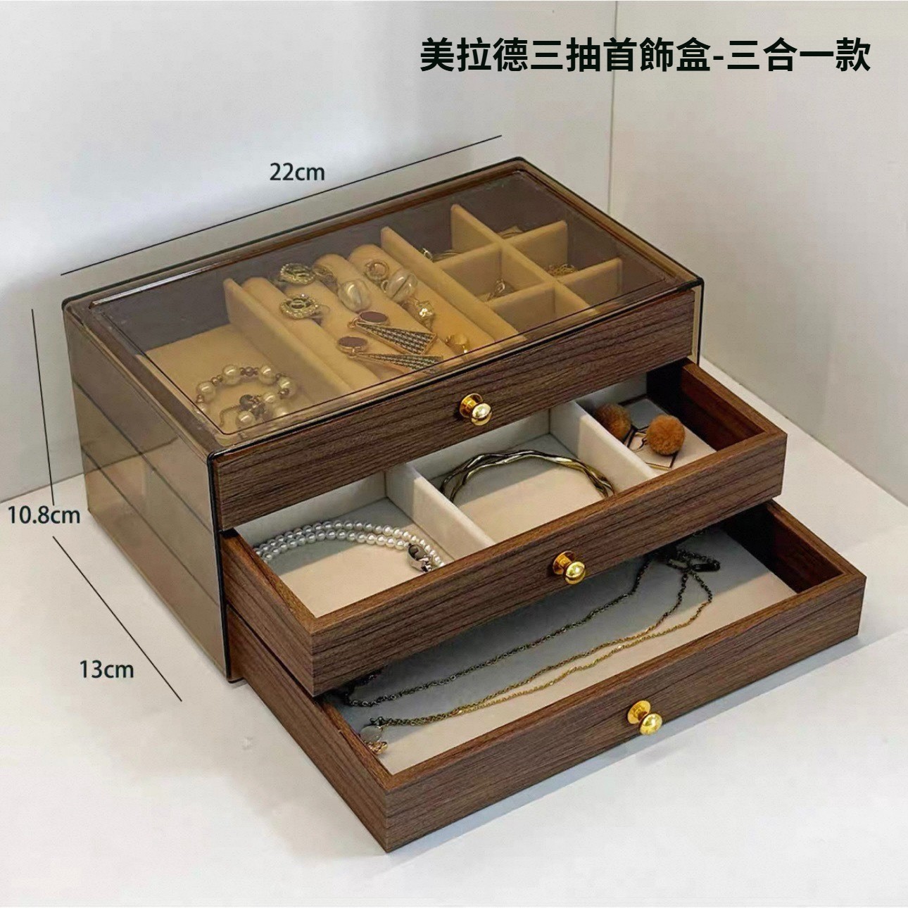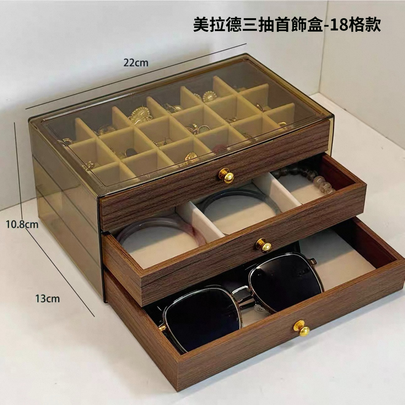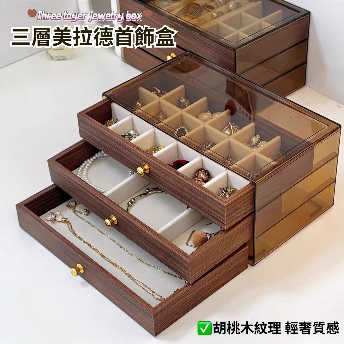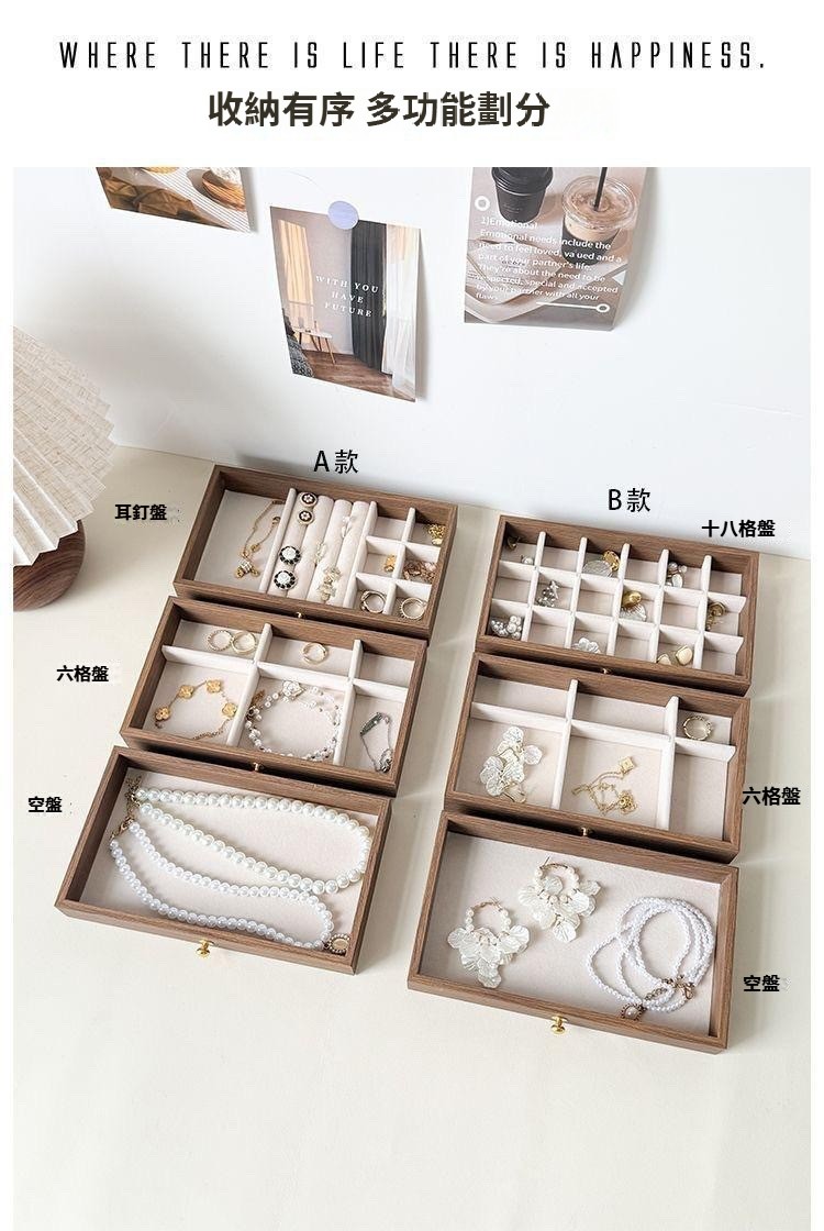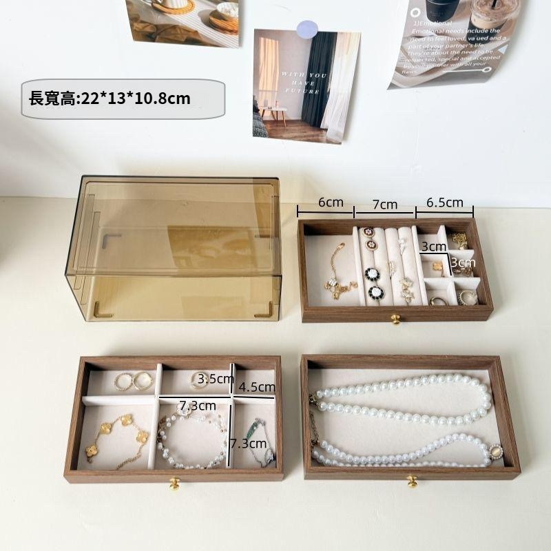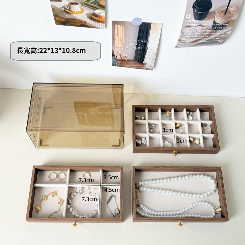 第 1 件 : 胡桃木復古18格三層首飾盒耳環收納飾品耳環戒指項鍊高級精緻輕奢