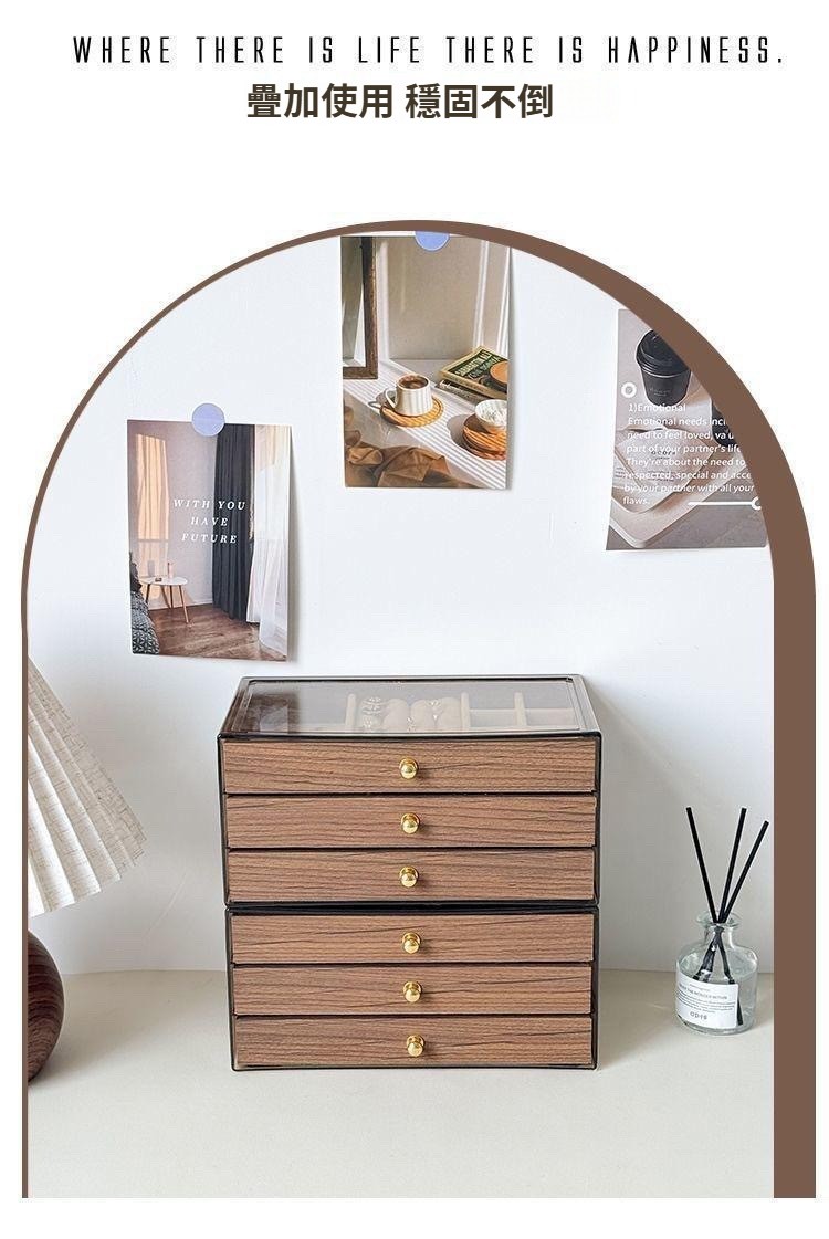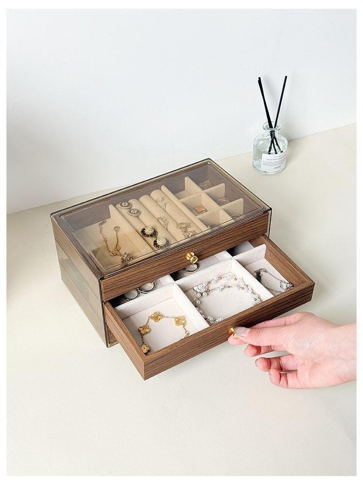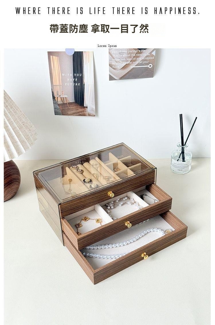第 2 件 : 胡桃木復古18格三層首飾盒耳環收納飾品耳環戒指項鍊高級精緻輕奢