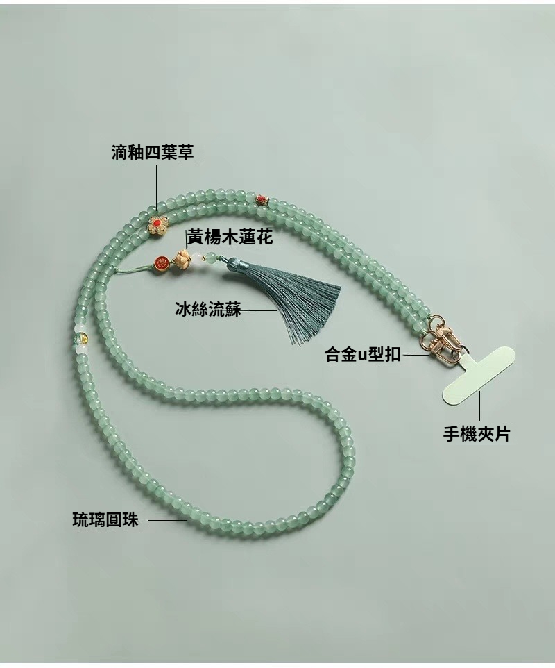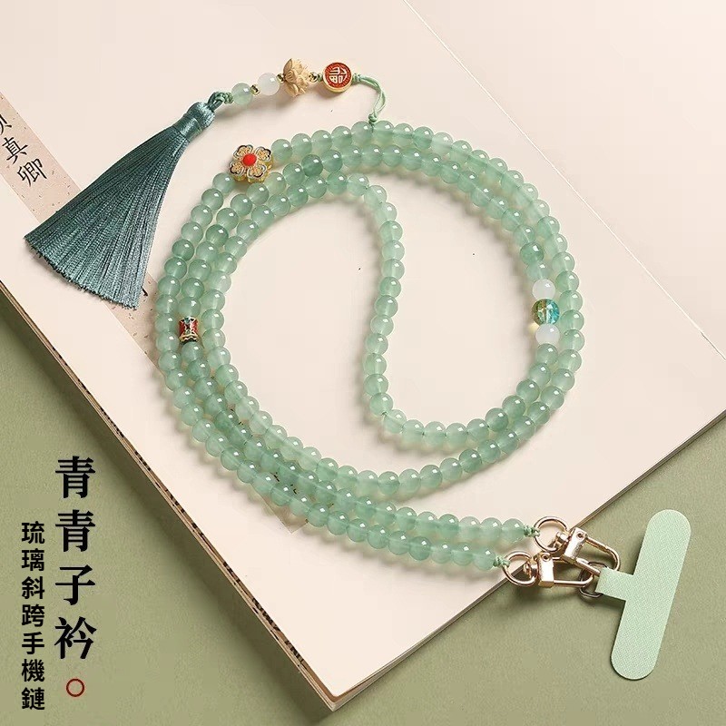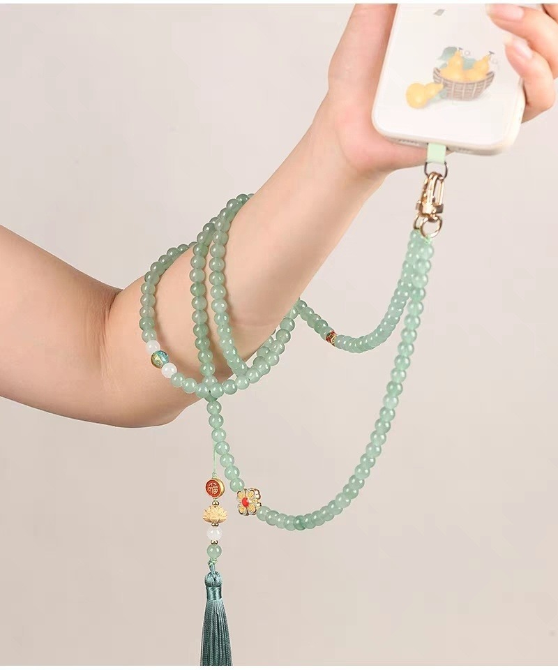 第 1 件 : 禪意斜挎手機鏈串珠長款防丟手機掛繩國風流蘇漢服配件2025新款