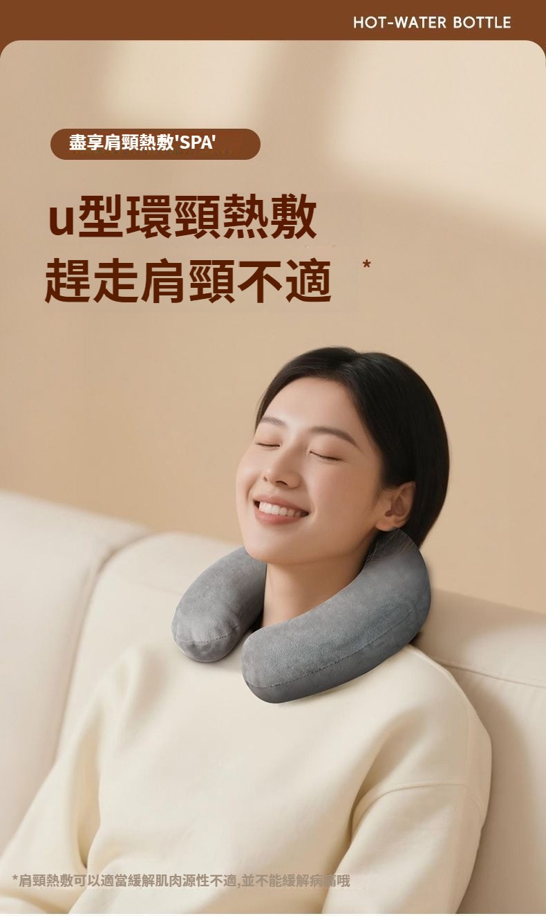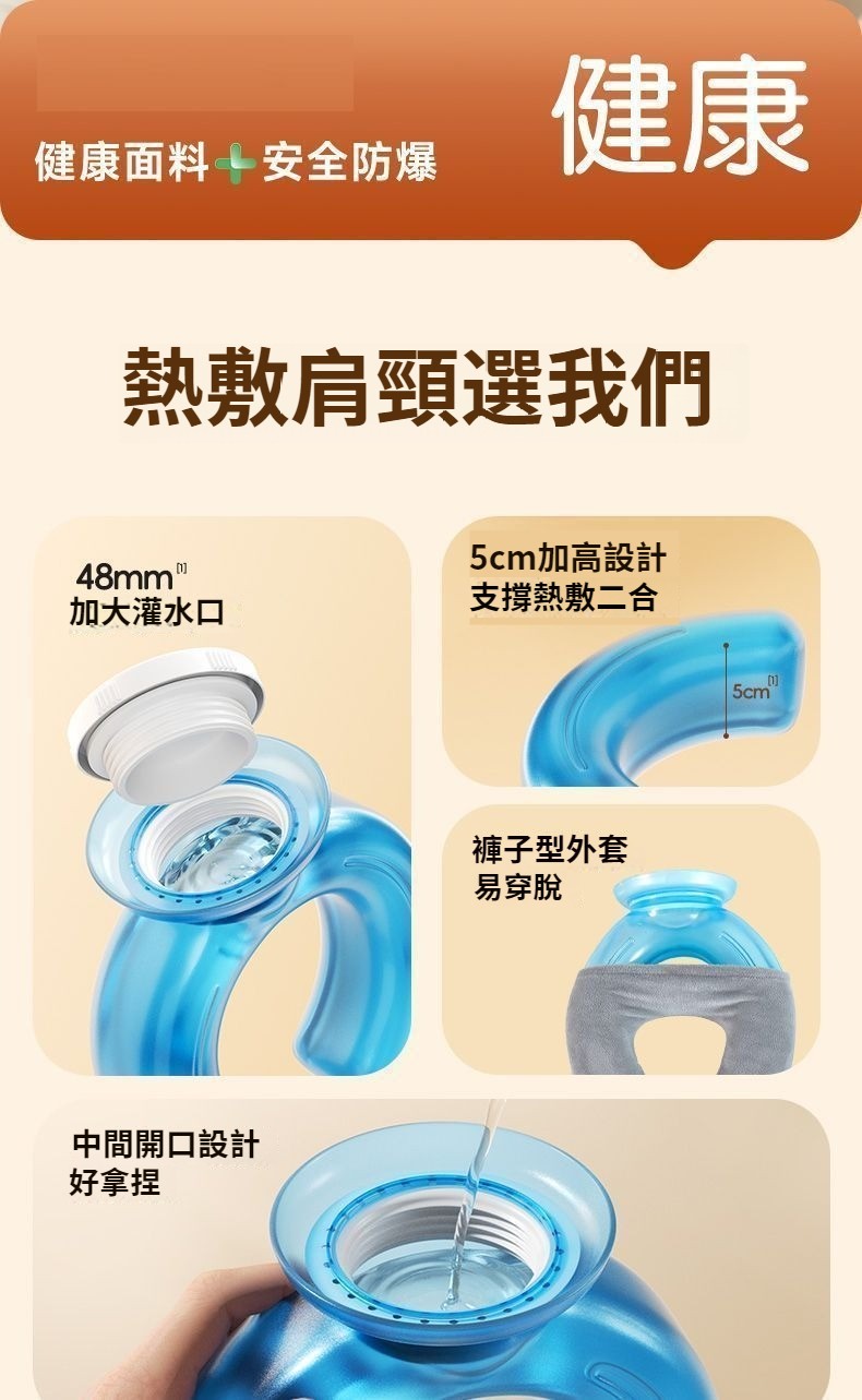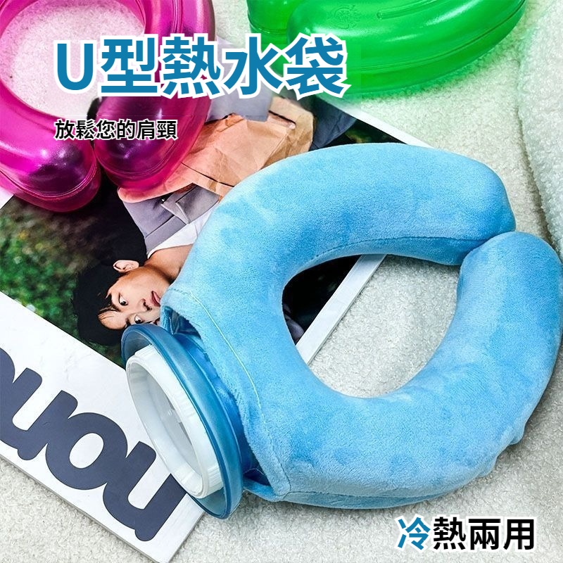 注水u型熱水袋,熱敷頸部防爆 頸椎加厚脖頸專用暖水袋護肩,灌水冷敷熱敷