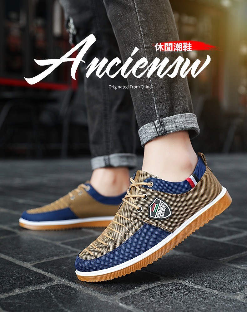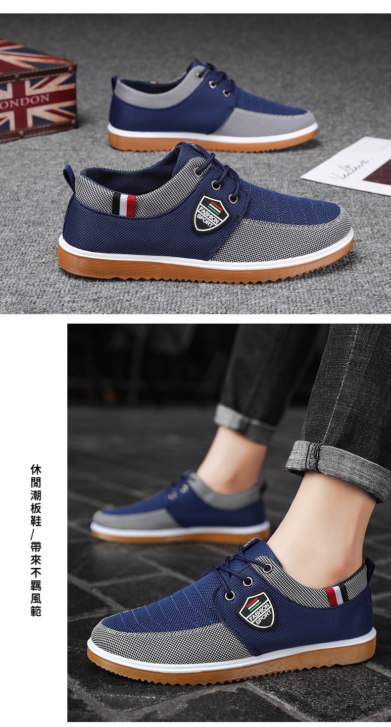 第 2 件 : 【有型有品】乾爽透氣耐磨休閒男鞋、爸爸百搭工作鞋休閒板鞋韓版男鞋繫帶休閒帆布鞋