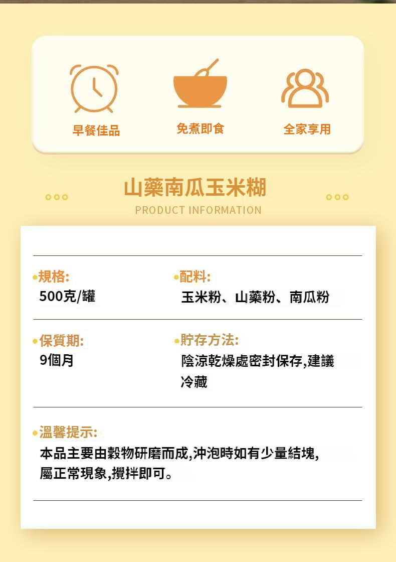 山藥南瓜玉米糊山藥粉熟玉米粉沖泡即食速溶粗糧代餐粉早餐速食粥 NT$ 999