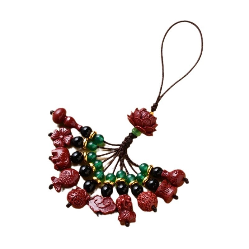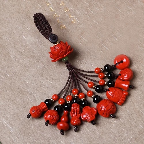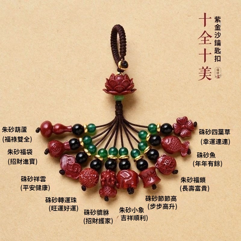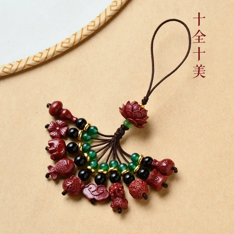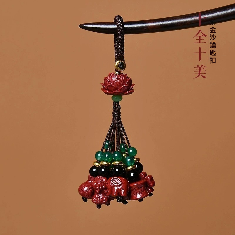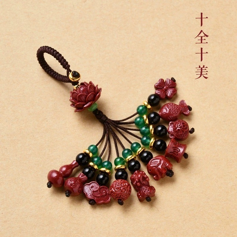 第 1 件 : 硃砂吊墜 十全鑰匙圈手機鏈個性名族風掛件本命年低含量硃砂掛件