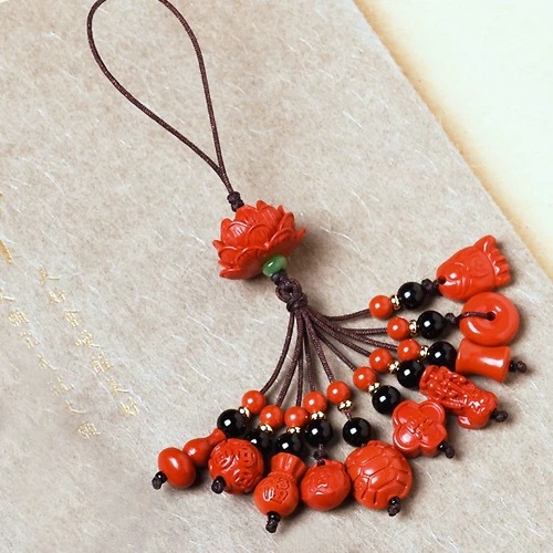 第 3 件 : 硃砂吊墜 十全鑰匙圈手機鏈個性名族風掛件本命年低含量硃砂掛件