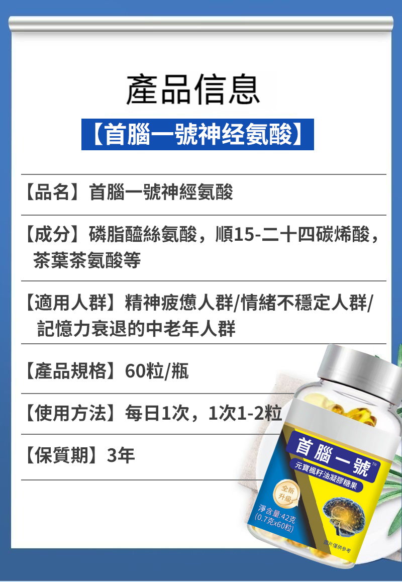 記憶力下降?理解能力差?反應遲鈍?腦神經受損? 做事老是丟三落四,說話總是說完就忘? 小心老年癡呆!首腦一號,科學補腦,活躍腦血液,促進腦供血,99.85%修復神經元,遠離失智症,改善記憶力,每夜都好睡~ NT$ 899