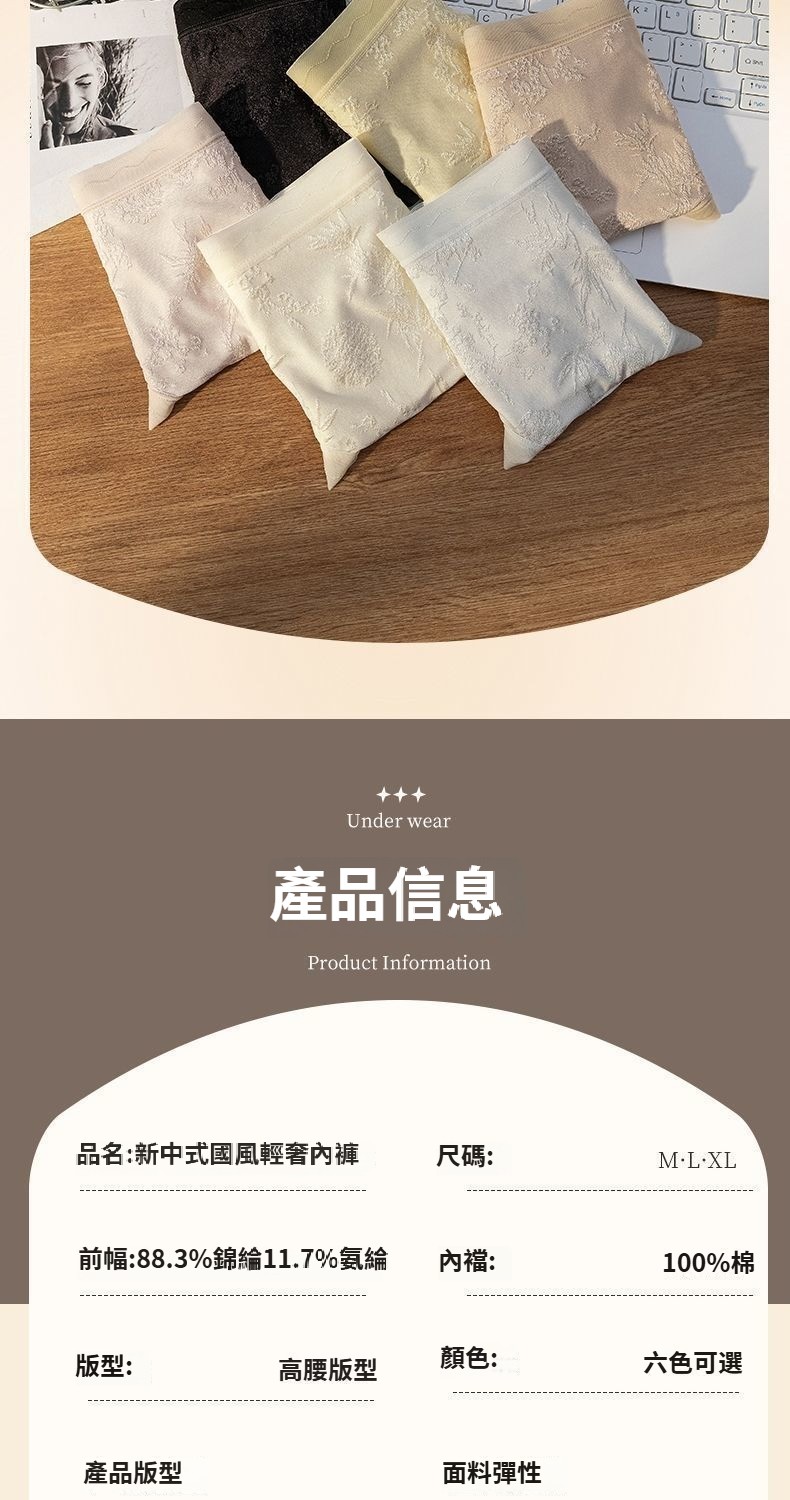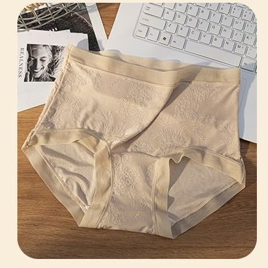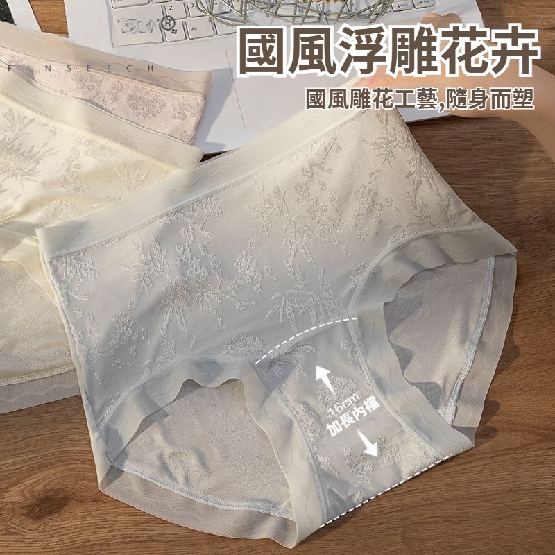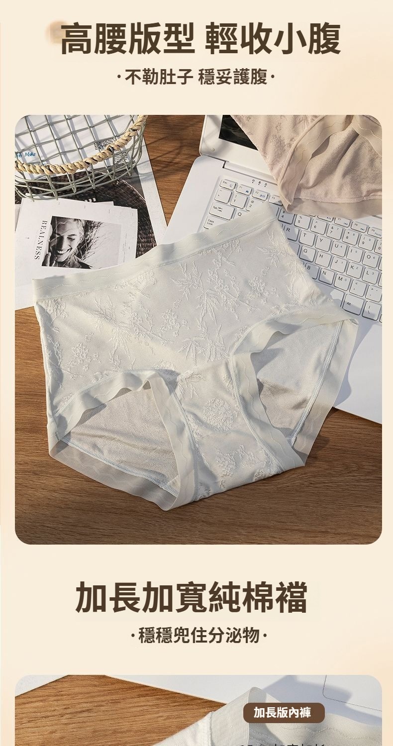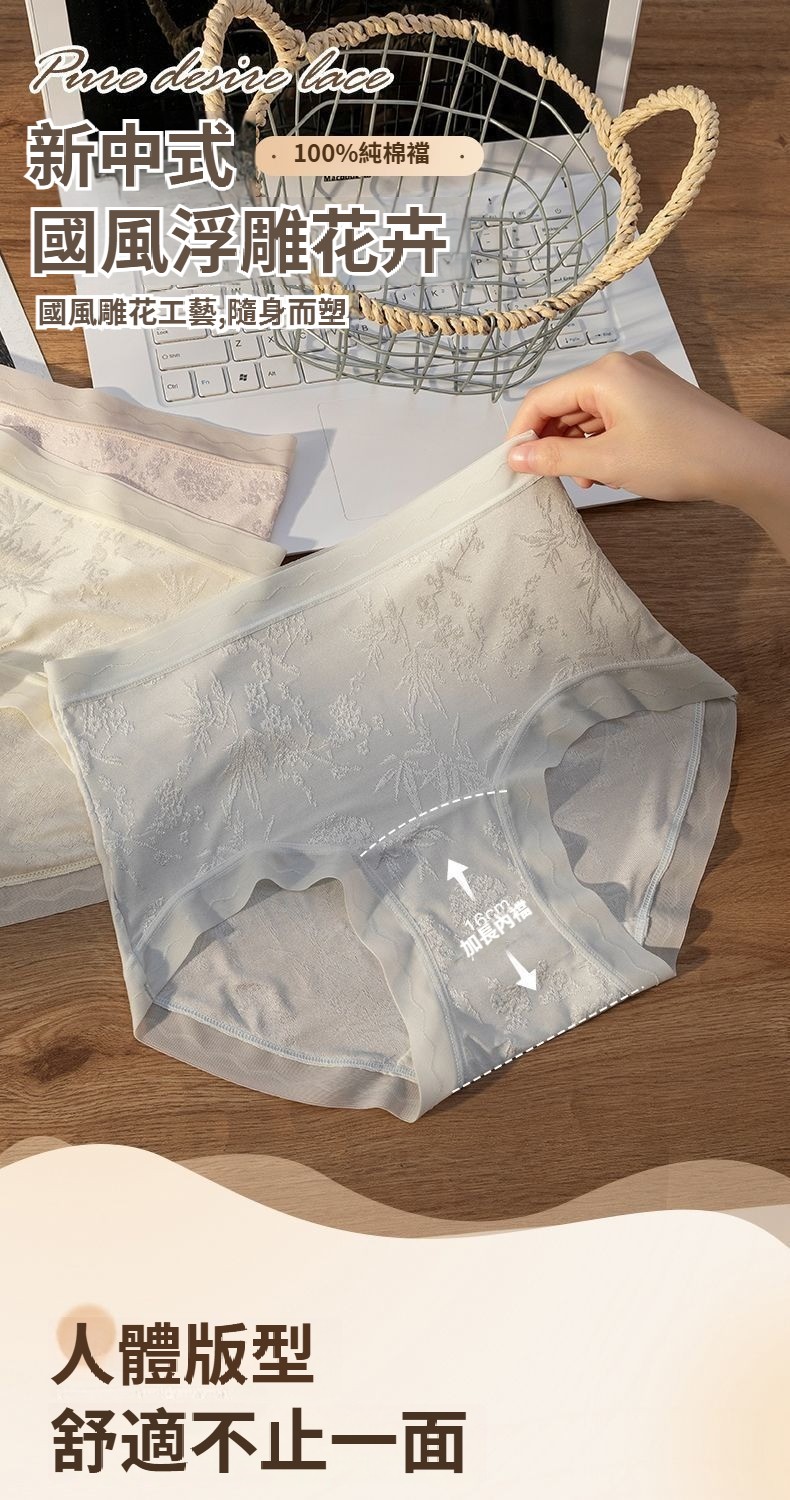 第 1 件 : 國風浮雕蕾絲中高腰加長純棉底檔抗菌性感蕾絲邊透氣內褲女