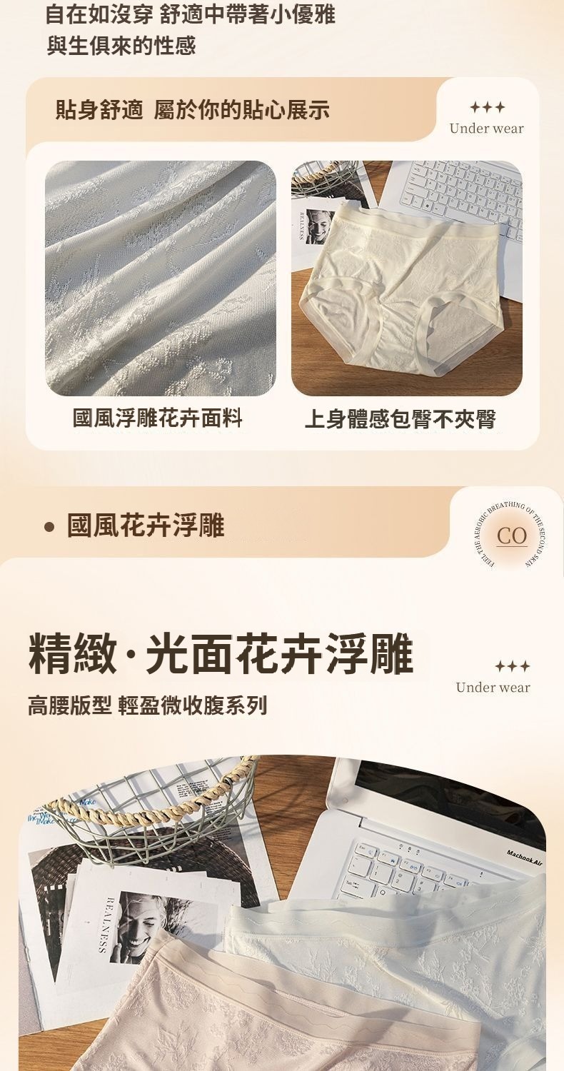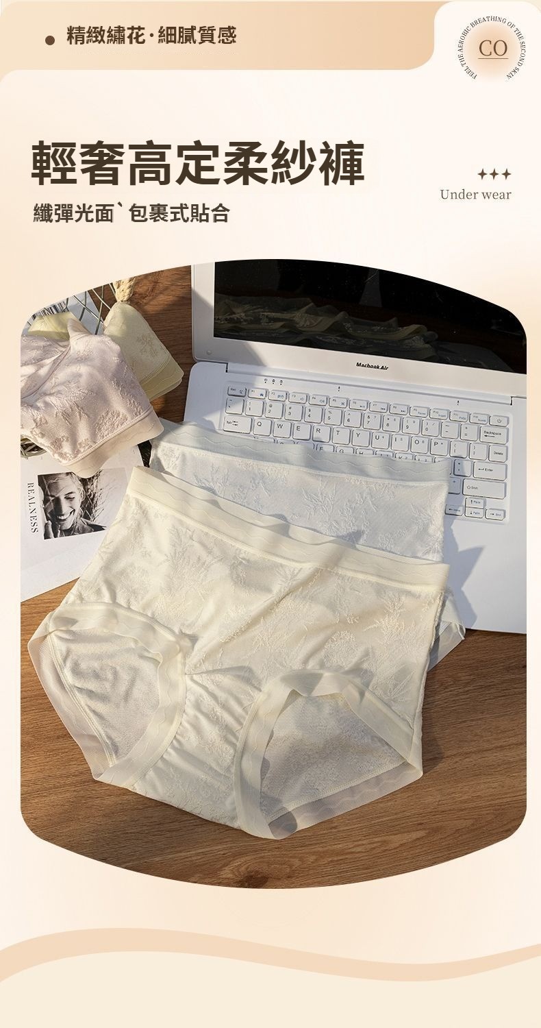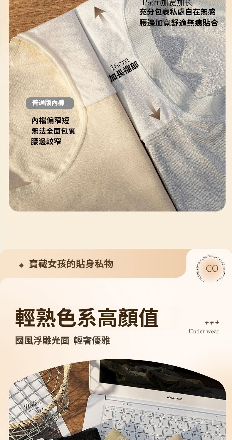 第 1 件 : 國風浮雕蕾絲中高腰加長純棉底檔抗菌性感蕾絲邊透氣內褲女