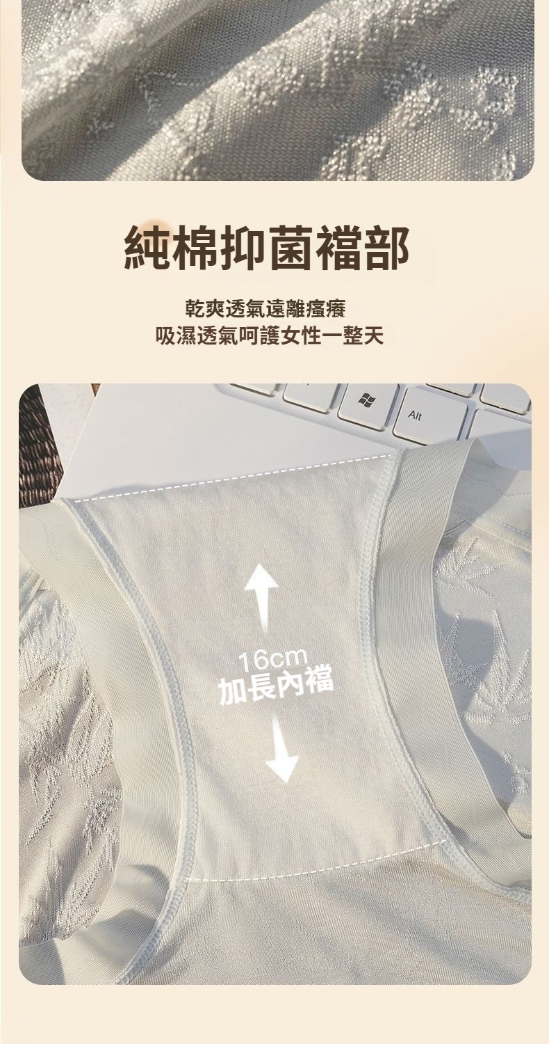 第 4 件 : 國風浮雕蕾絲中高腰加長純棉底檔抗菌性感蕾絲邊透氣內褲女