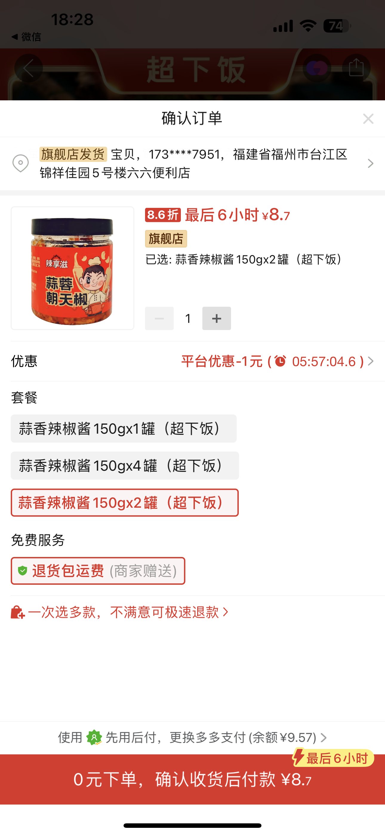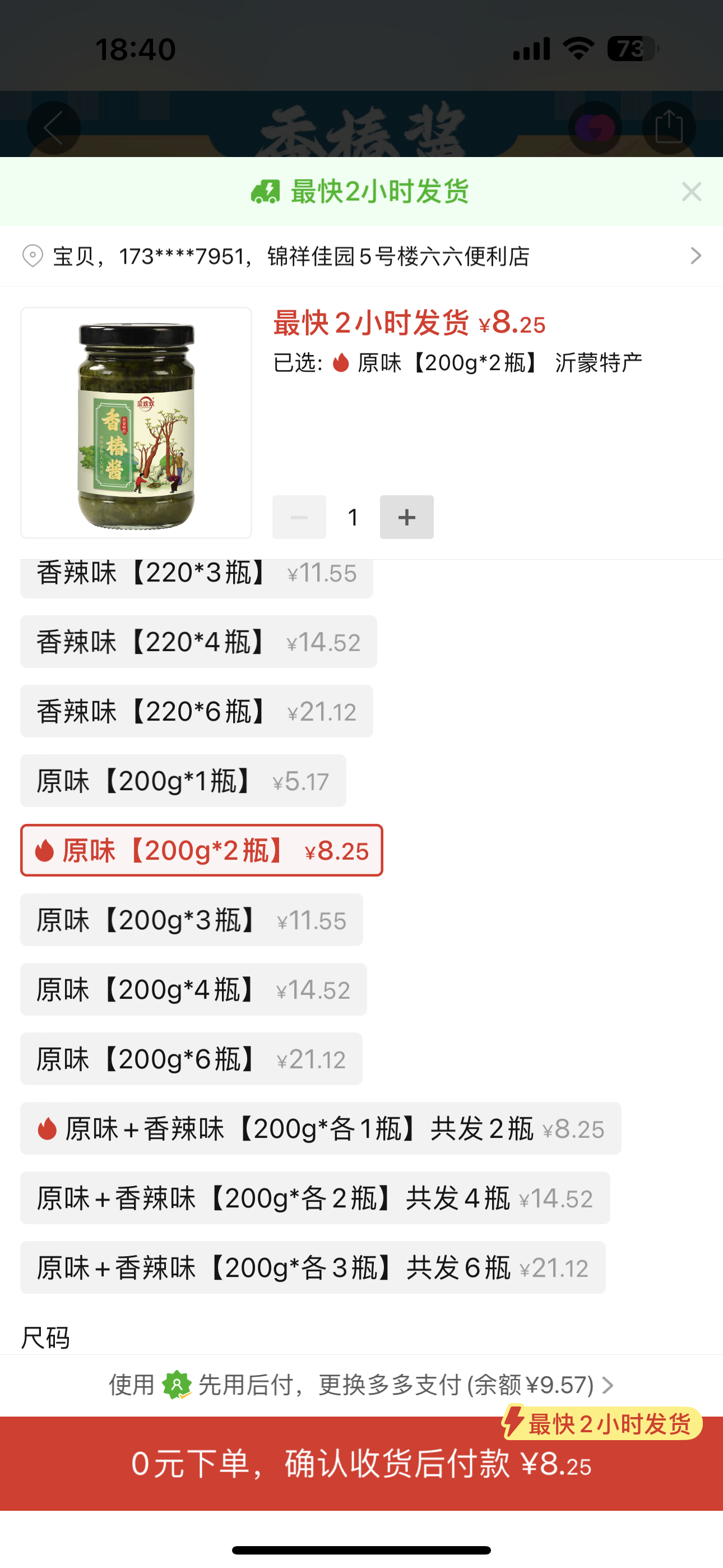 ①特色香椿醬香辣味4瓶+原味2瓶+②蒜蓉朝天椒醬2瓶