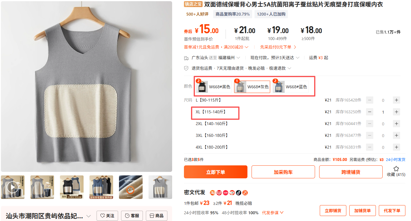 ①羊絨保暖背心XL 5件(黑*2、藍*2、灰*1):【双面德绒保暖背心男士5A抗菌阳离子蚕丝贴片无痕塑身打底保暖内衣】复制¥1a388Nj30X0aw¥,打开【手机阿里】或【支付宝-点首页进行搜索】查看:https://qr.1688.com/s/Tel80OUy CZ7694