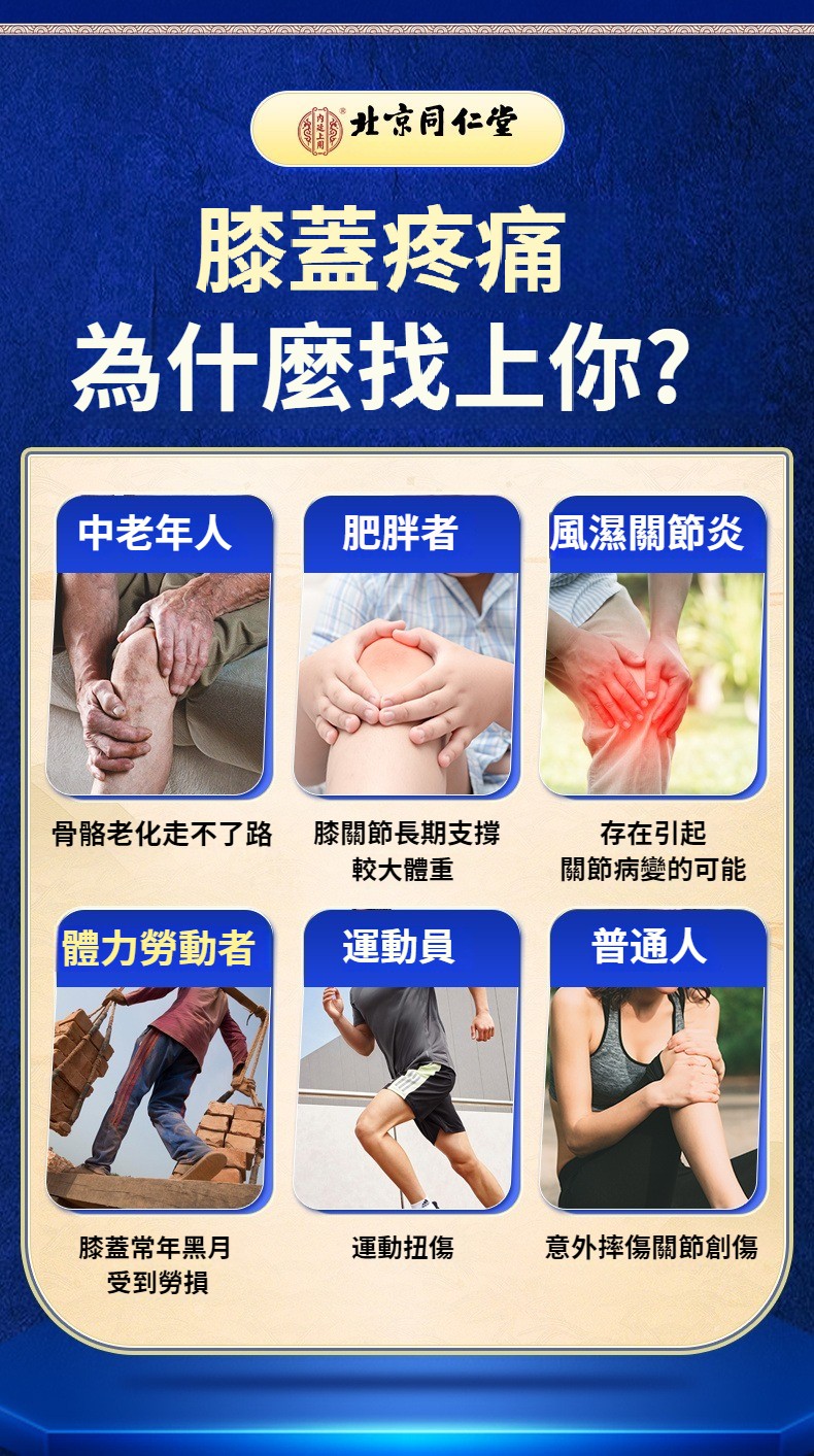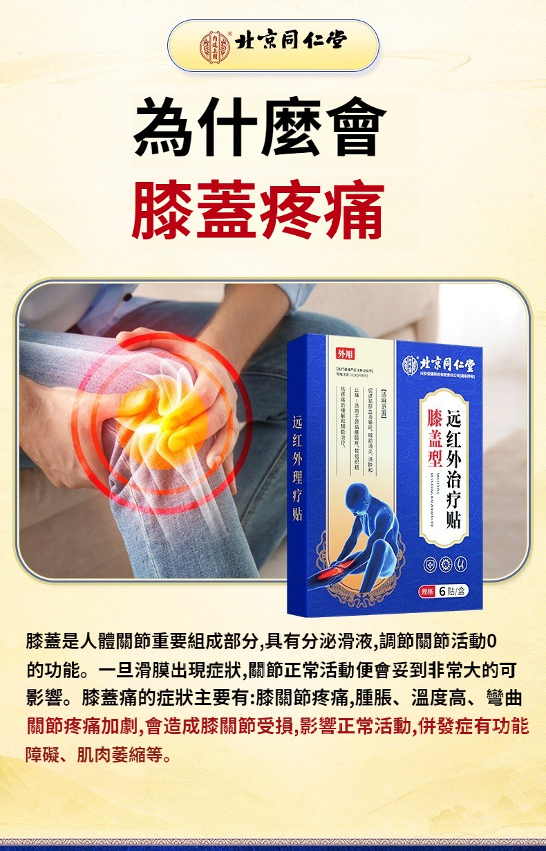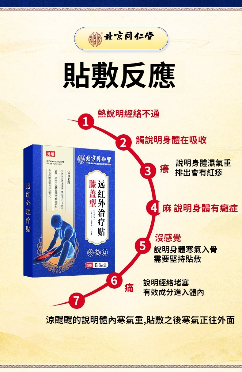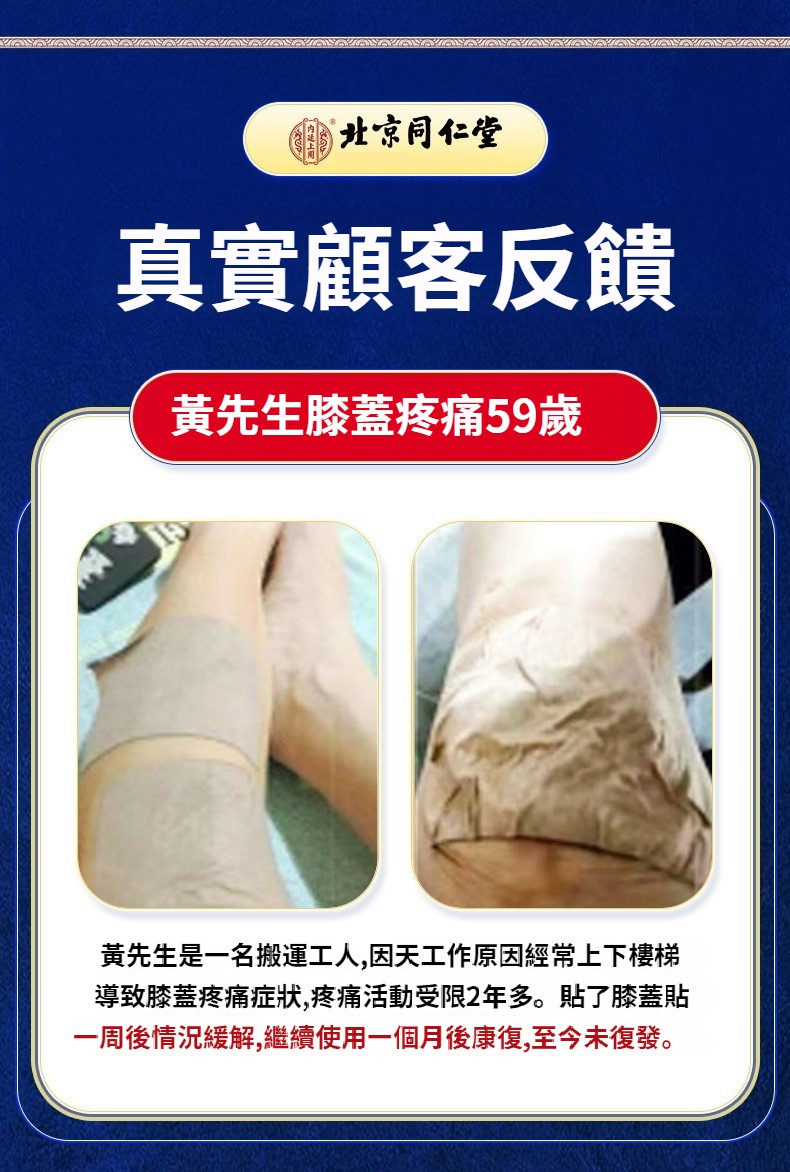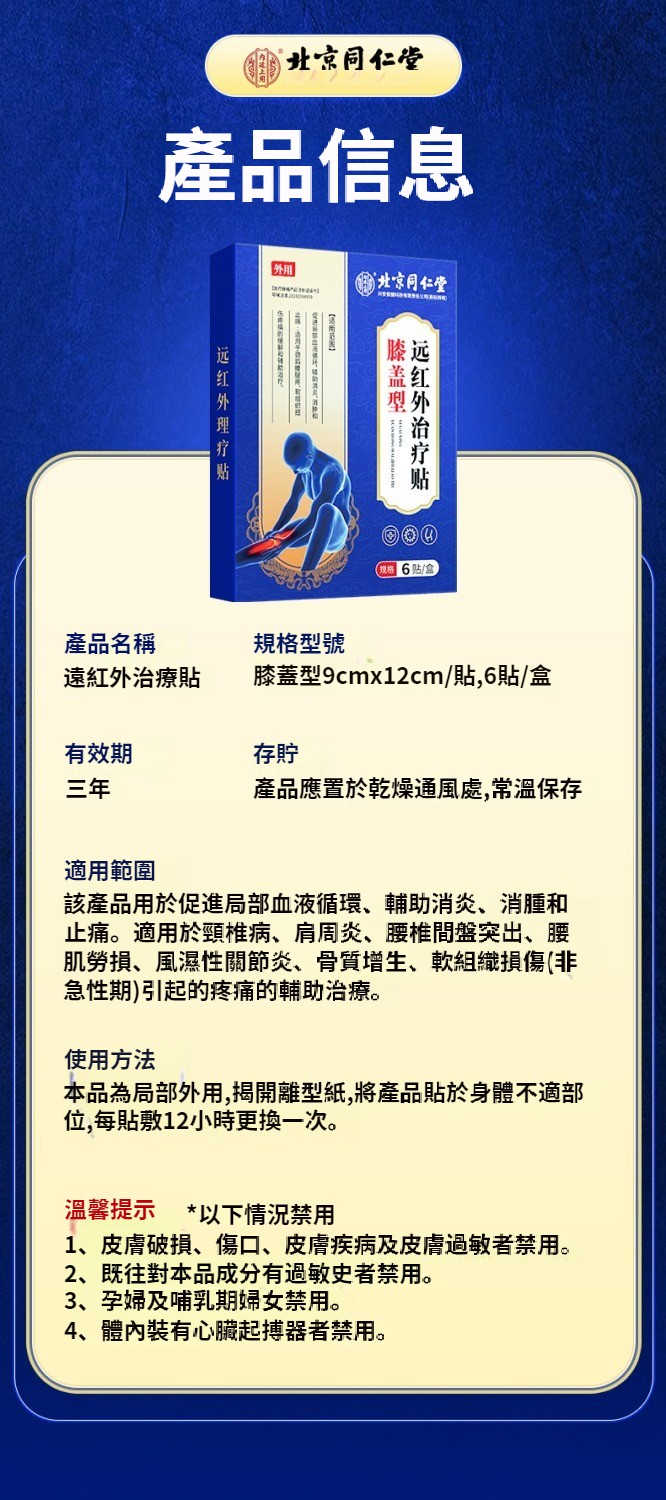 北京同仁堂膝蓋疼痛突出坐骨神經積水積液半月板扭傷老寒腿膏藥貼 NT$ 990