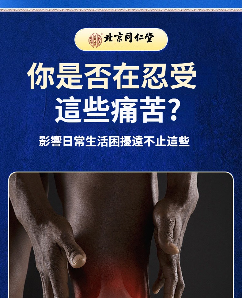 北京同仁堂膝蓋疼痛突出坐骨神經積水積液半月板扭傷老寒腿膏藥貼