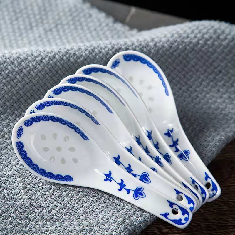 青花瓷中式陶瓷玲瓏湯匙家用湯匙長柄調羹湯匙老式 QAR 699