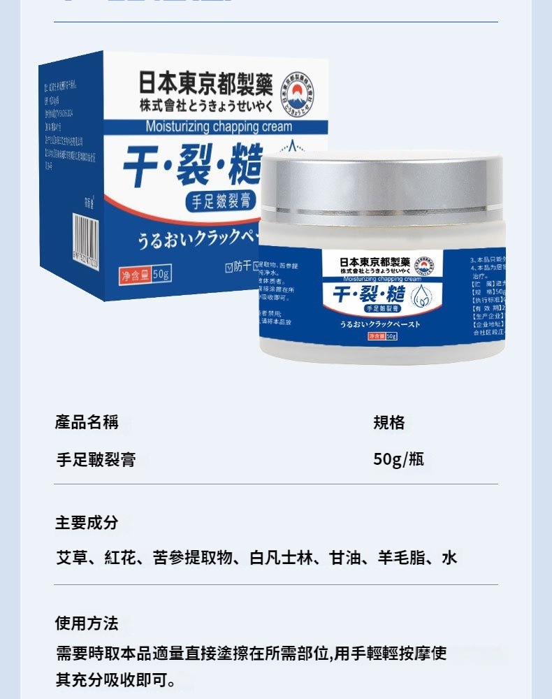 日本東京都皸裂膏乾裂膏腳跟塗抹膏滋潤霜護手護足霜冬季防凍膏