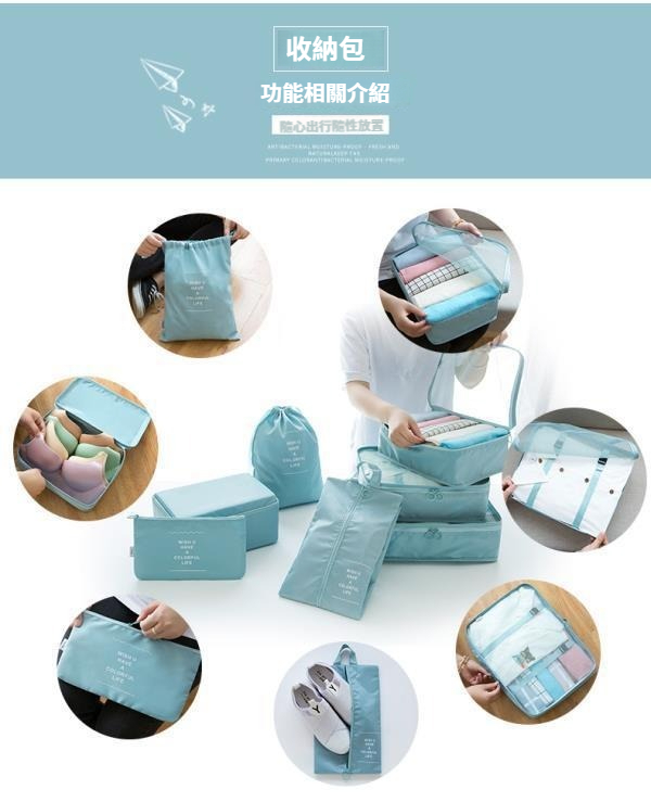 第 2 件 : 旅行收納袋八件套行李箱衣物整理袋出差旅遊衣服鞋內衣分裝收納袋