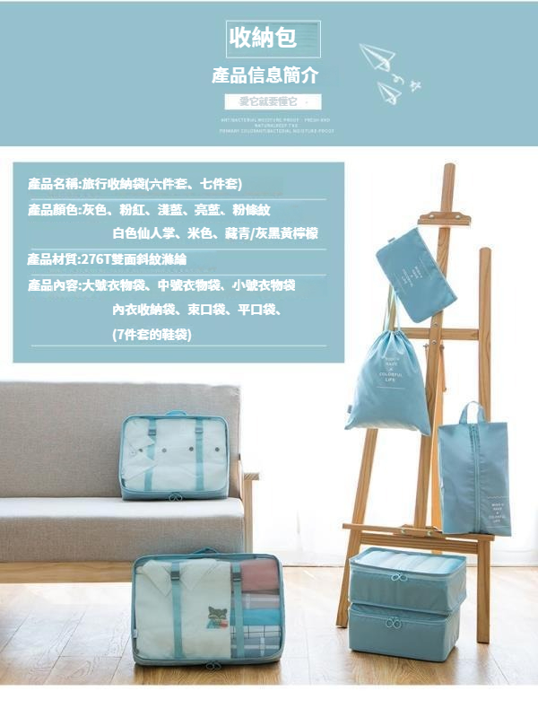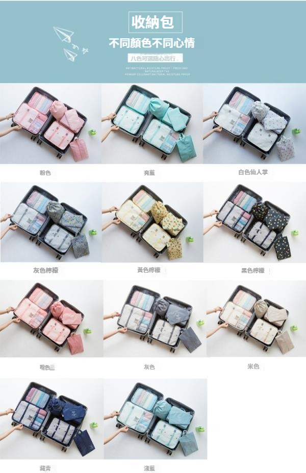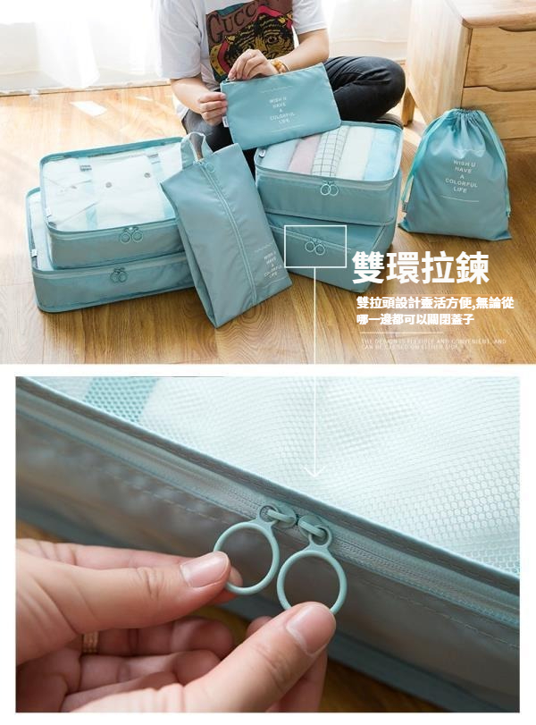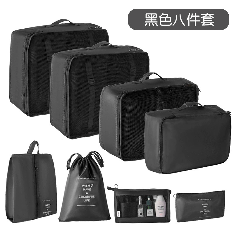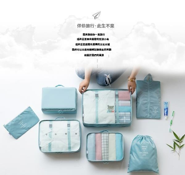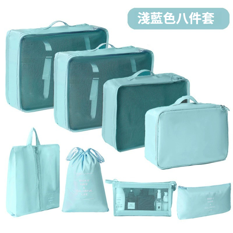 第 1 件 : 旅行收納袋八件套行李箱衣物整理袋出差旅遊衣服鞋內衣分裝收納袋