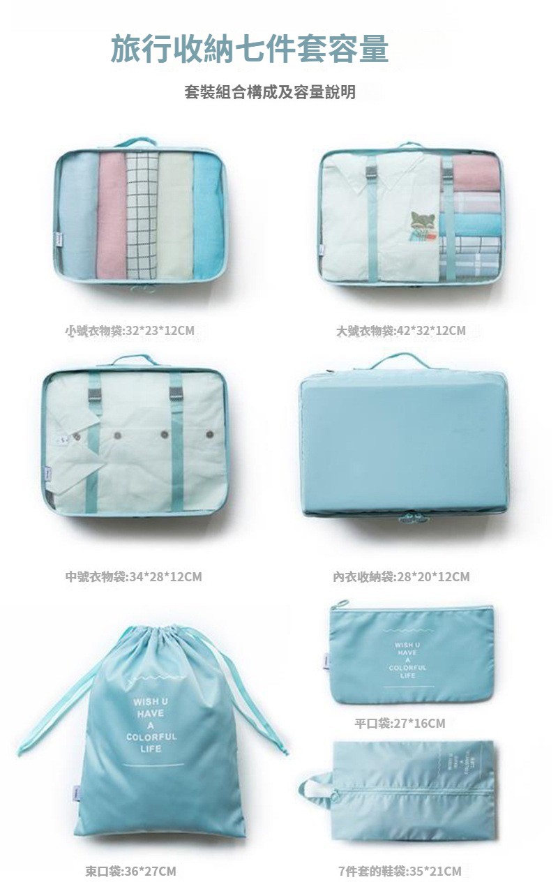第 3 件 : 旅行收納袋八件套行李箱衣物整理袋出差旅遊衣服鞋內衣分裝收納袋
