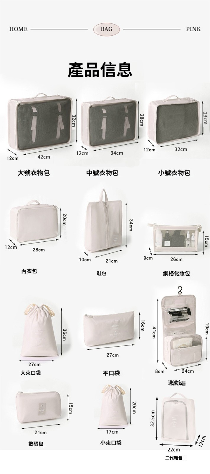 粉色旅行收納袋【化妝包八件套】
