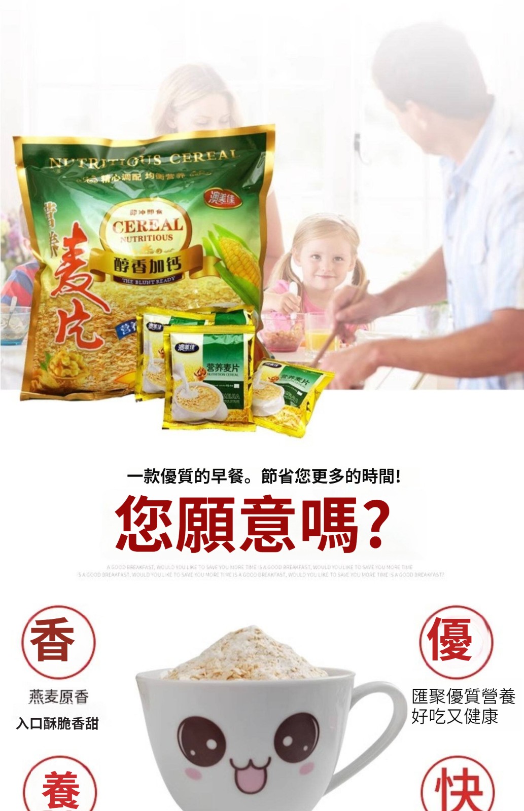 澳美佳】早餐麥片醇香加鈣甜麥片沖泡學生宿舍加班沖飲速食可干吃