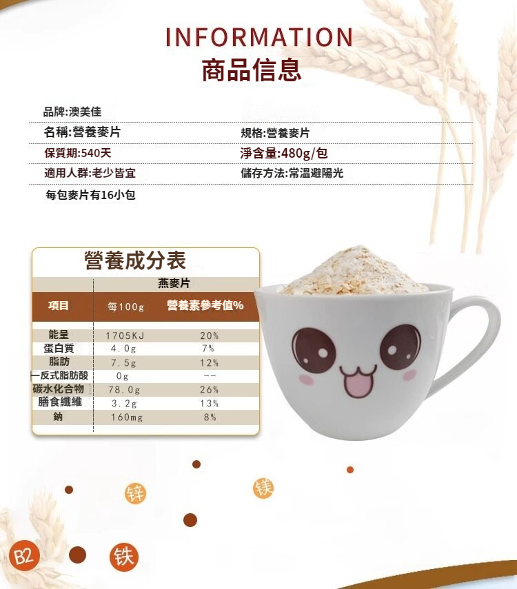 澳美佳】早餐麥片醇香加鈣甜麥片沖泡學生宿舍加班沖飲速食可干吃 NT$ 950
