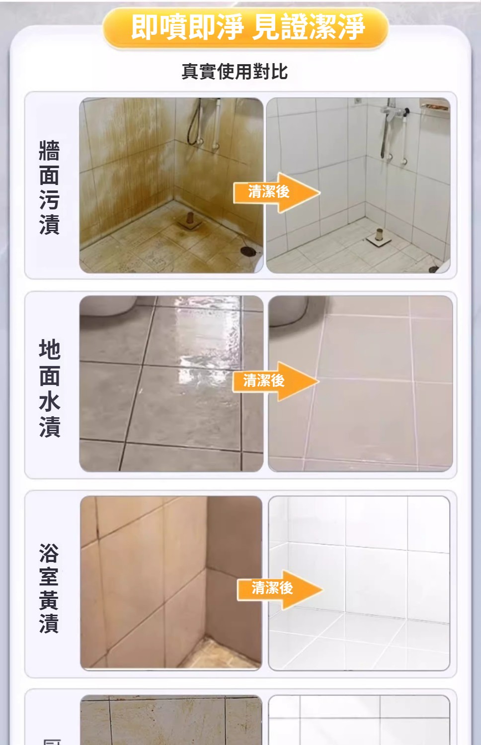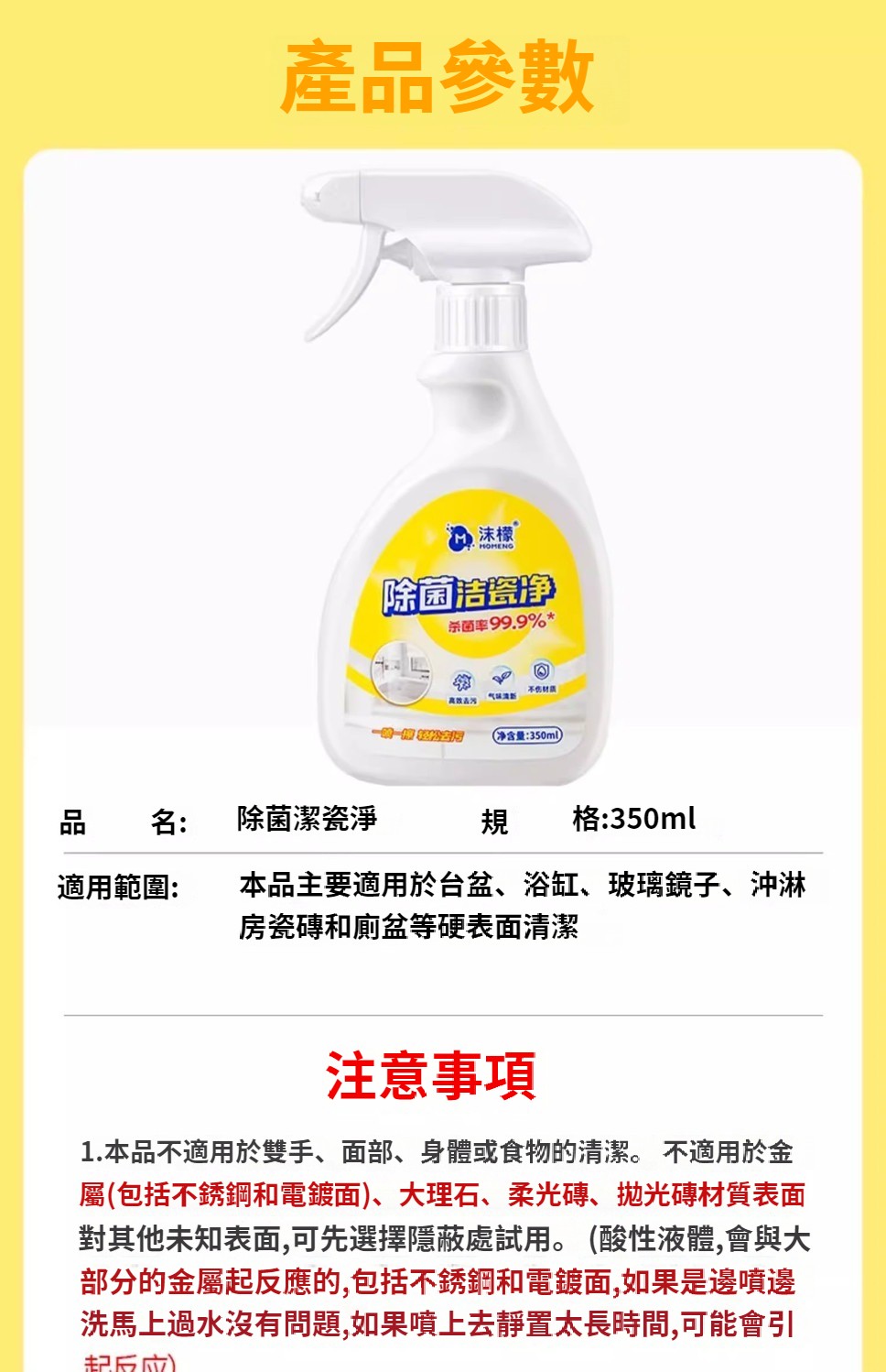 除菌潔瓷淨地板磁磚清潔劑浴室除臭牆面玻璃水垢