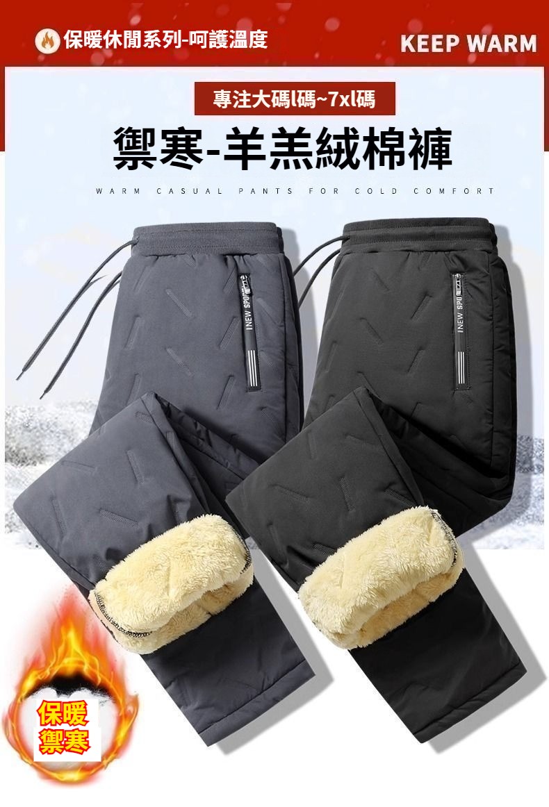 第 1 件 : 羊羔絨棉褲秋冬季加絨防寒男士松緊腰休閑褲御寒保暖長褲子