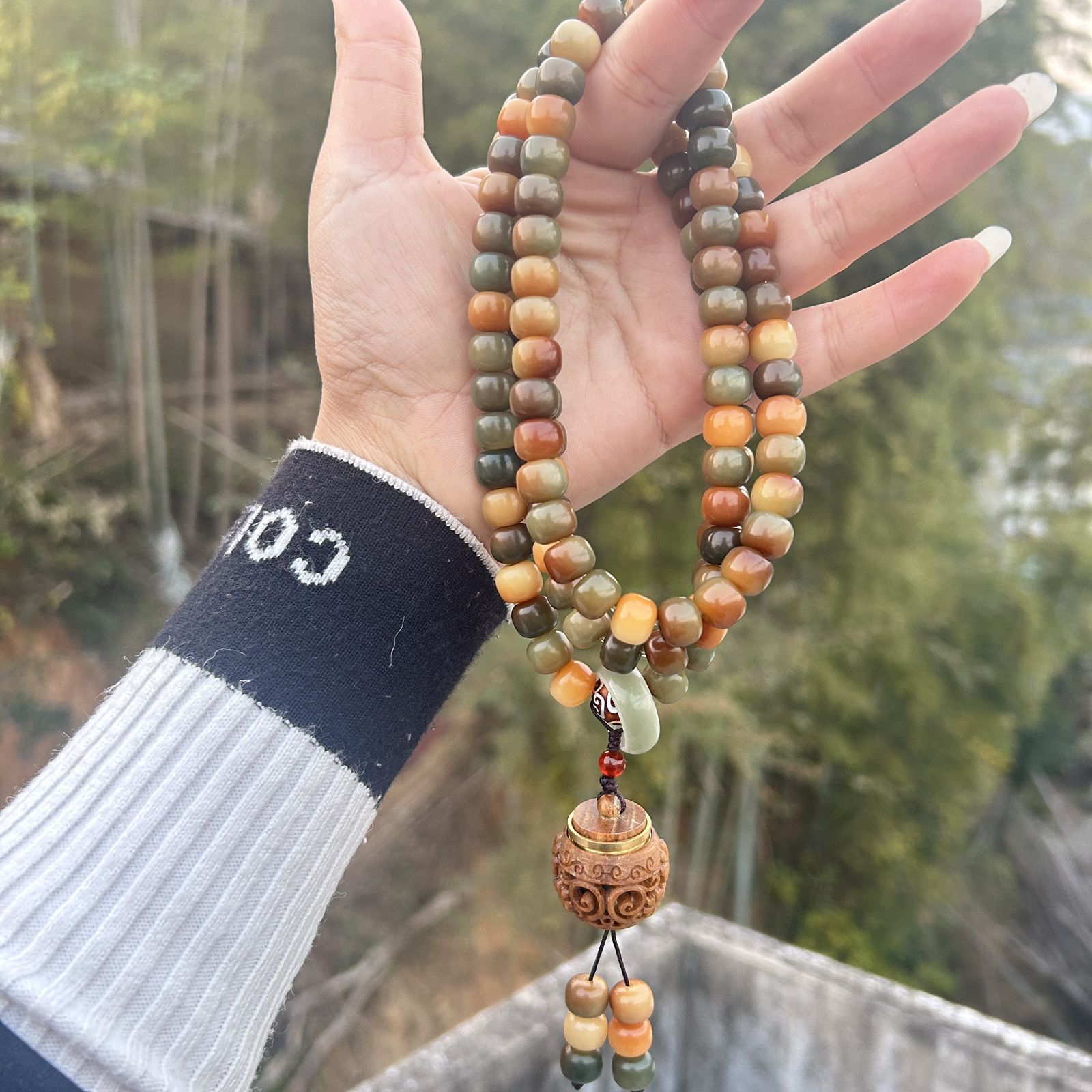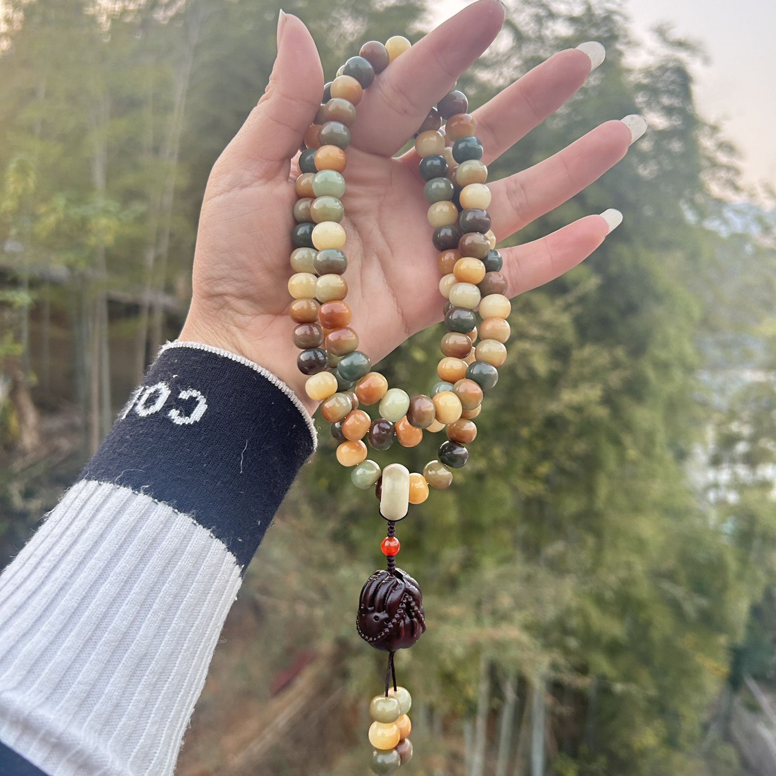 第 1 件 : 爆款菩提手持問天菩提子手串敦煌蓮花男女佛珠文玩念珠