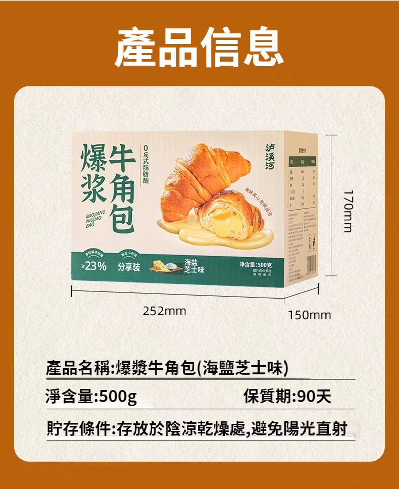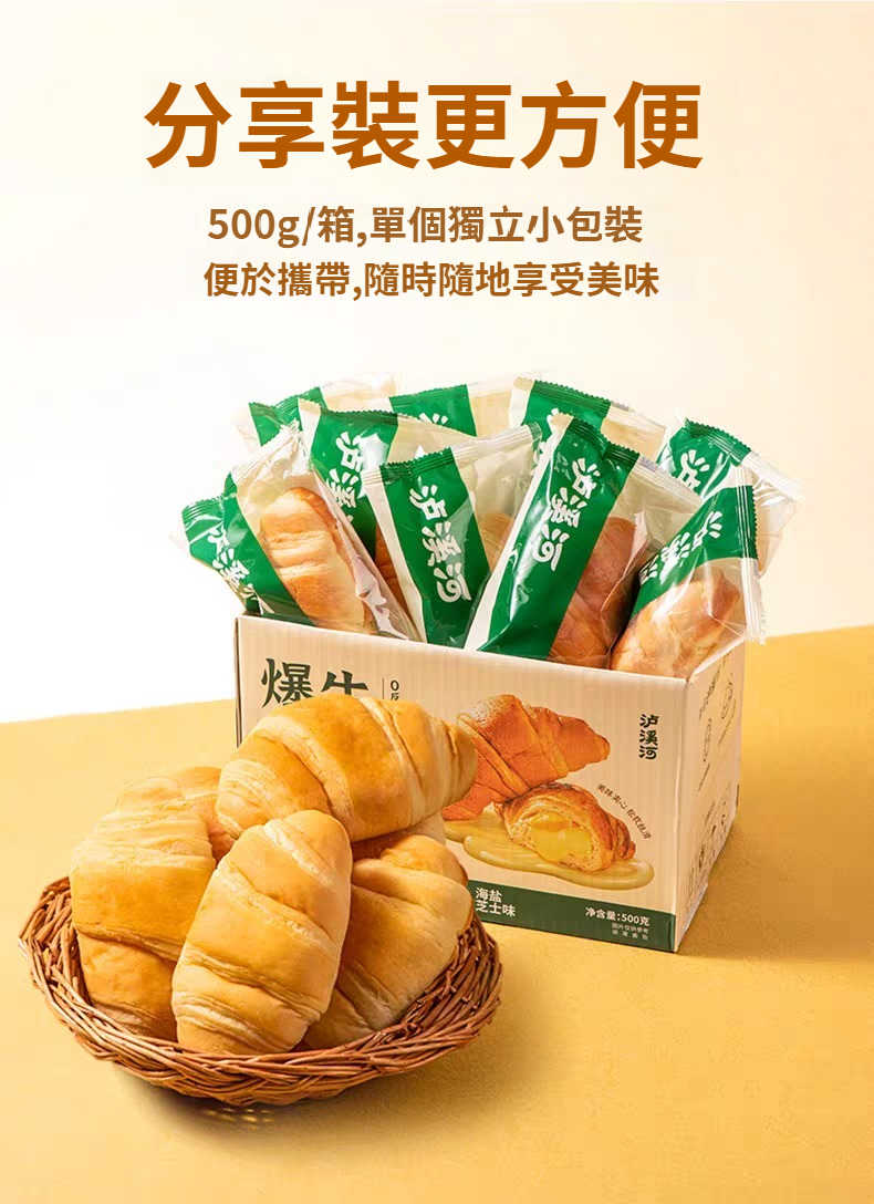 爆漿牛角包海鹽芝士味夾心面包早餐代餐休閑零食糕點心 NT$ 1099