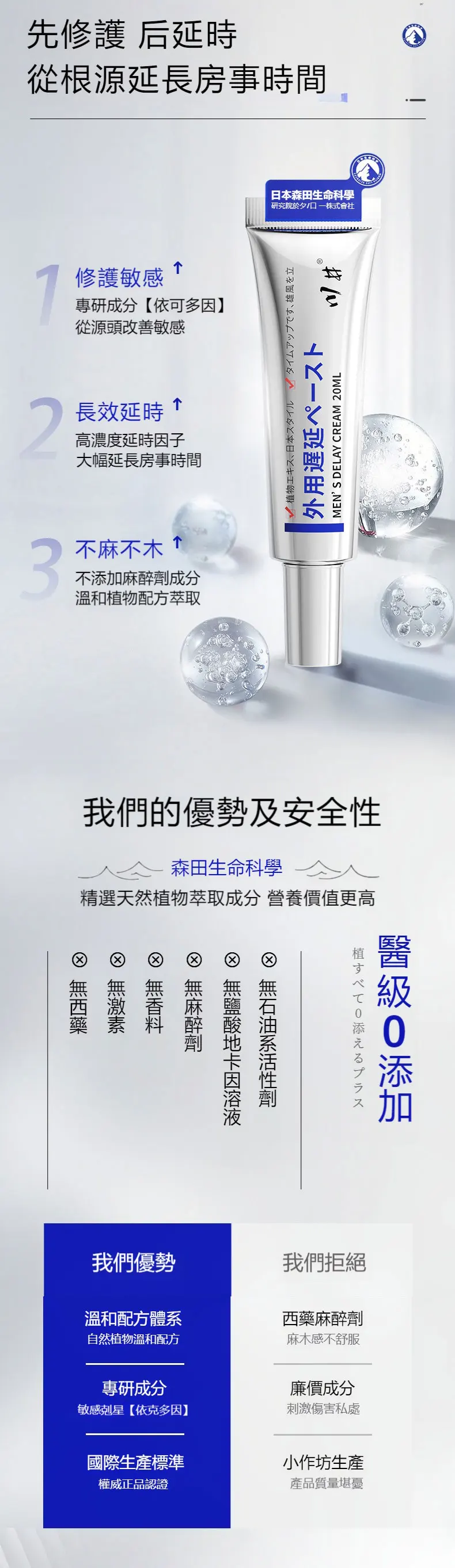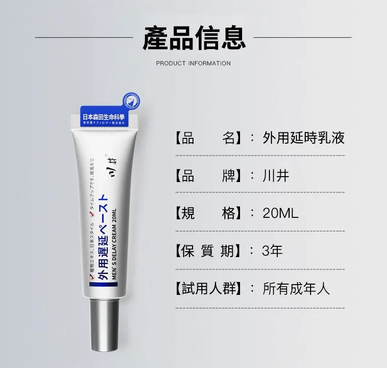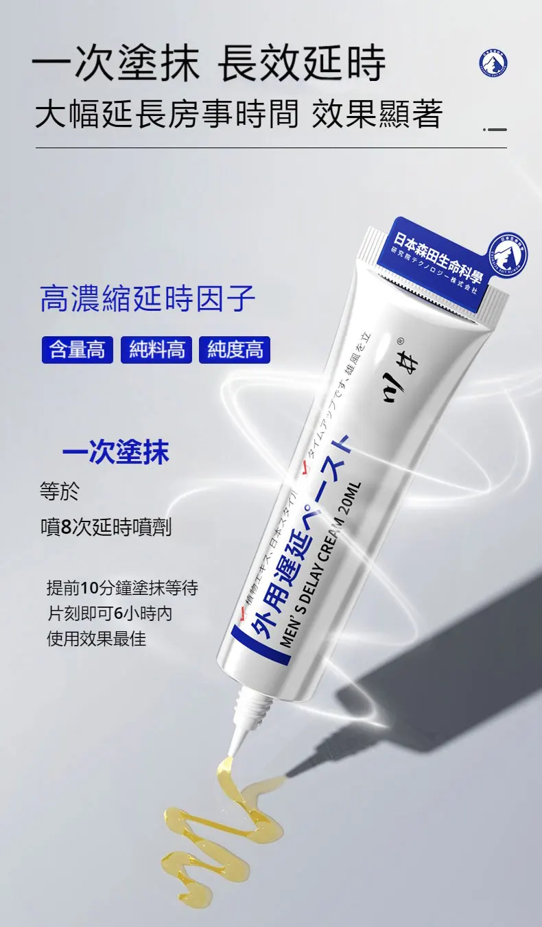 【日本進口專利技術】日本川井聯合森田生命科學聯合出品延時持久軟膏!男性外科專家力薦 ,有點小貴但是新科技加持無依賴無副作用,平均延長1小時