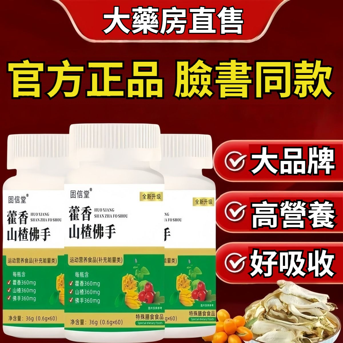 【官方正品】藿香山楂佛手全新升級草本配方老牌專用