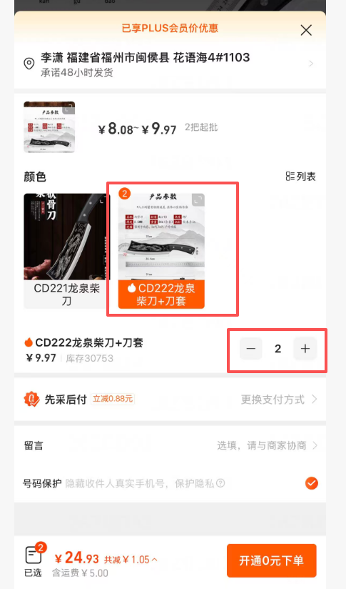 ①加厚砍骨刀+刀套 2把